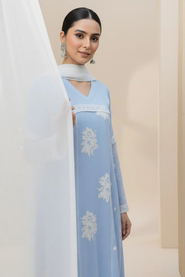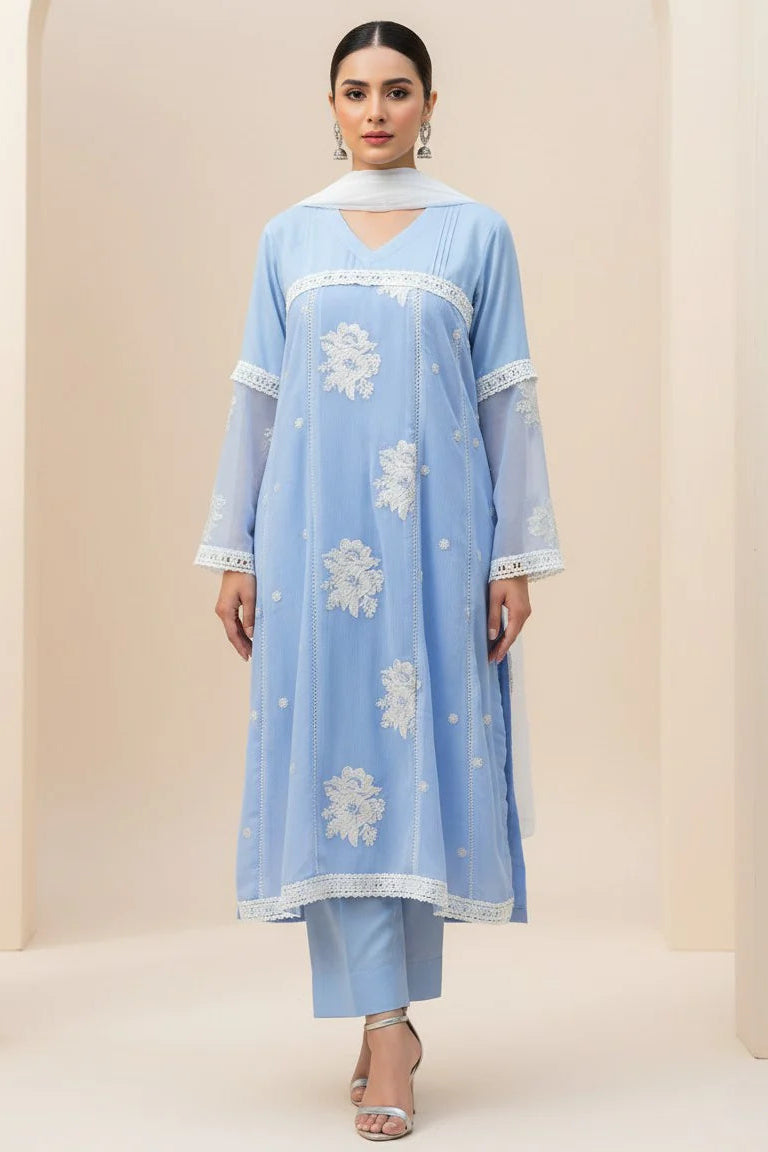 Solid Embellished one-piece set, fully embroidered front and back top in chiffon fabric