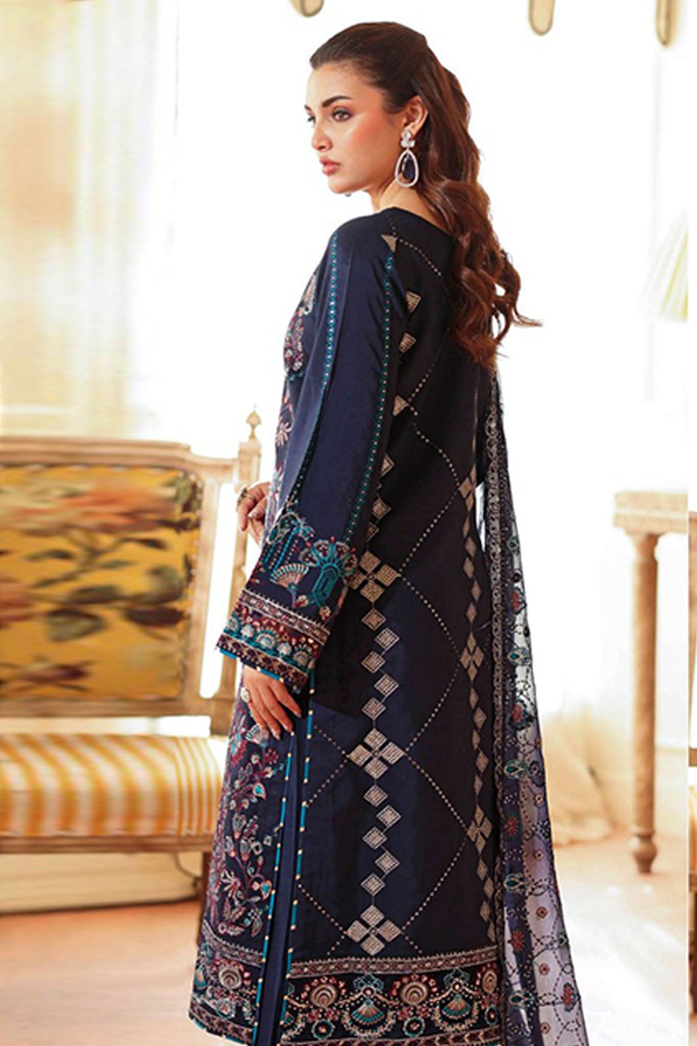 • 3 Piece Unstitched Luxury Embroidered Raw Silk Suit