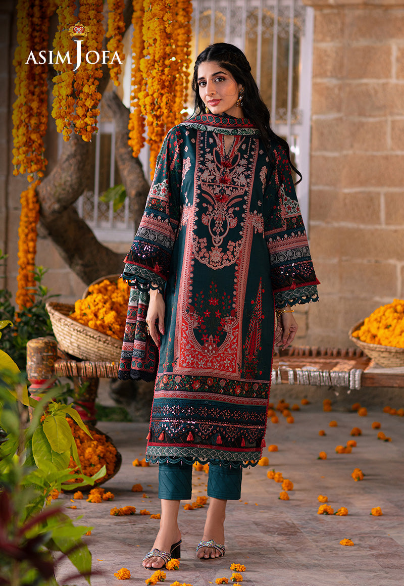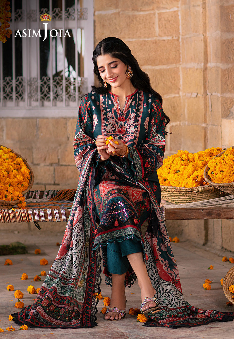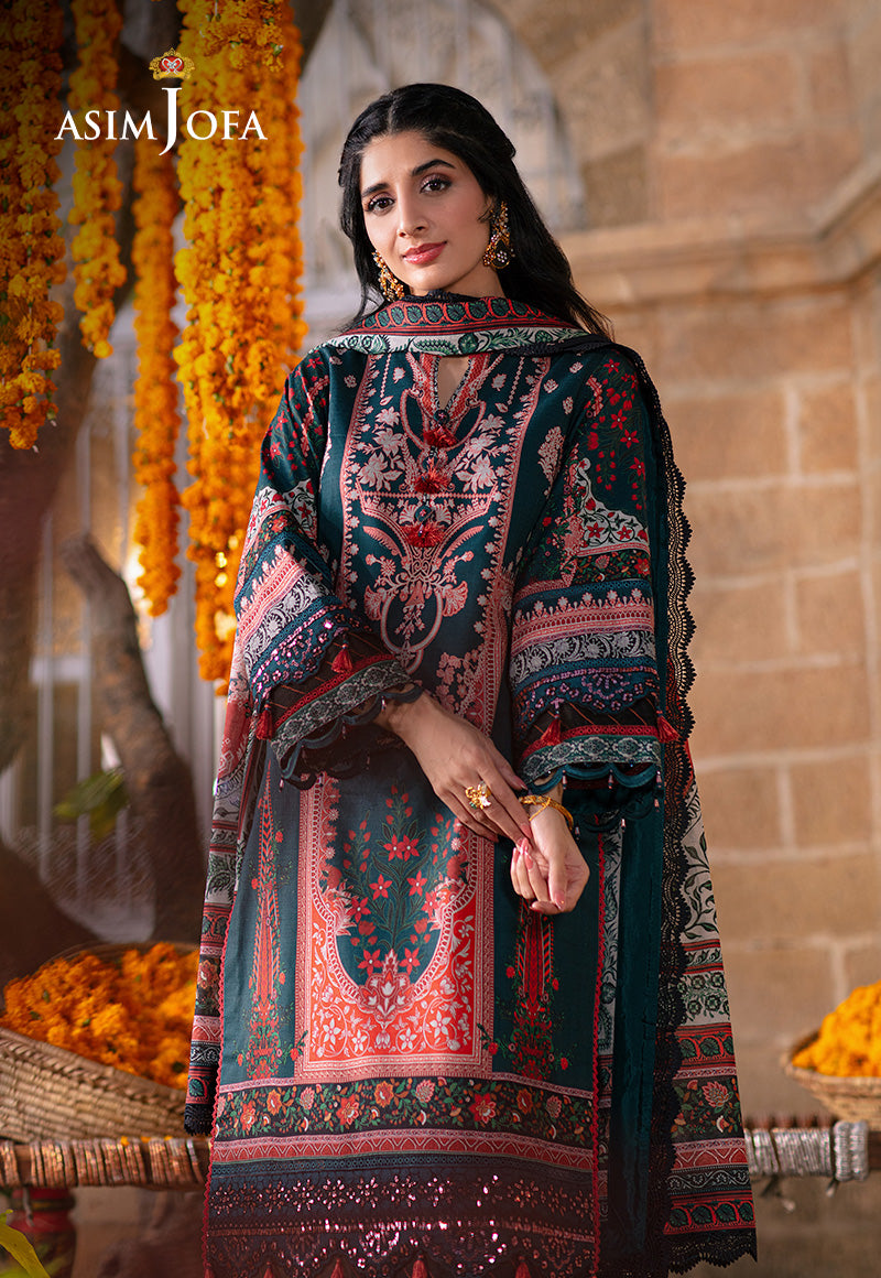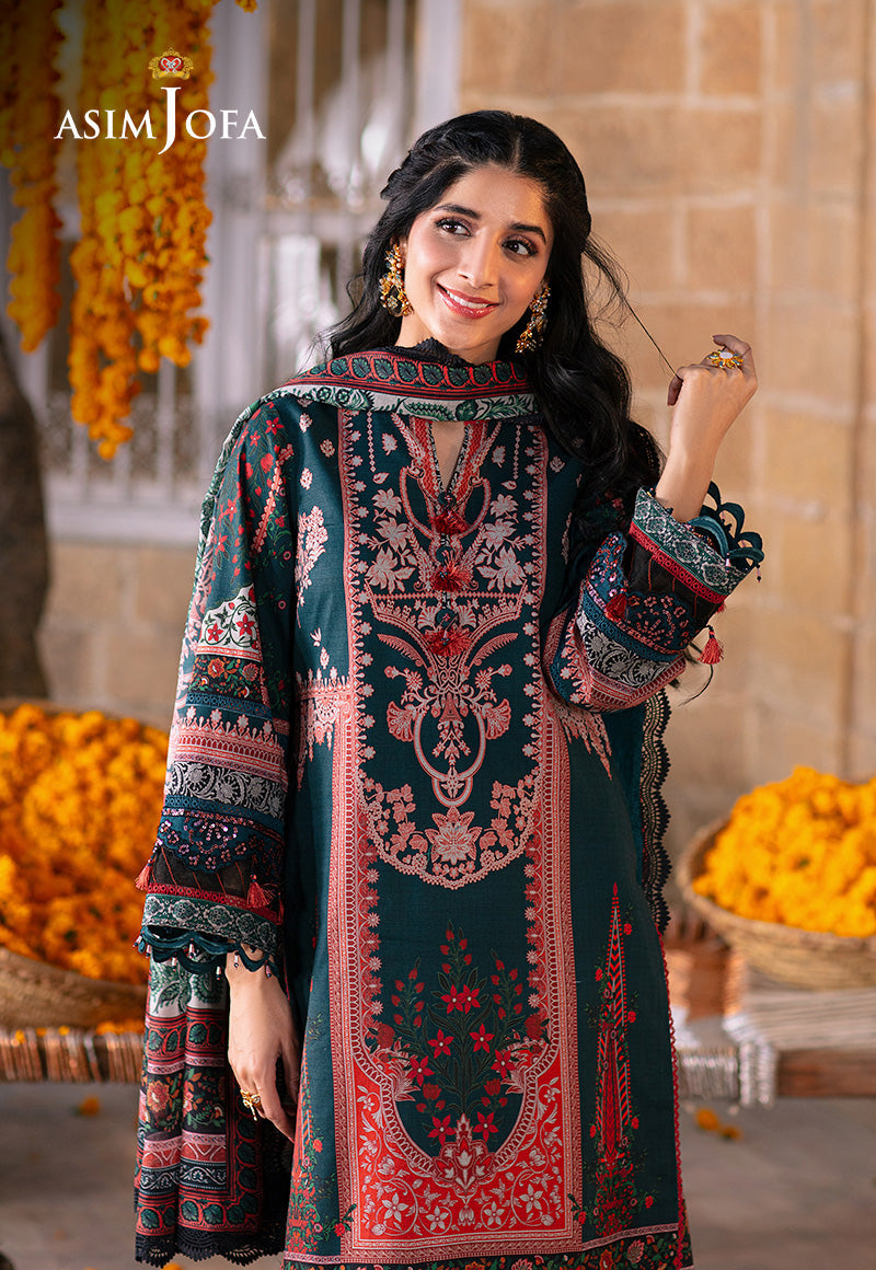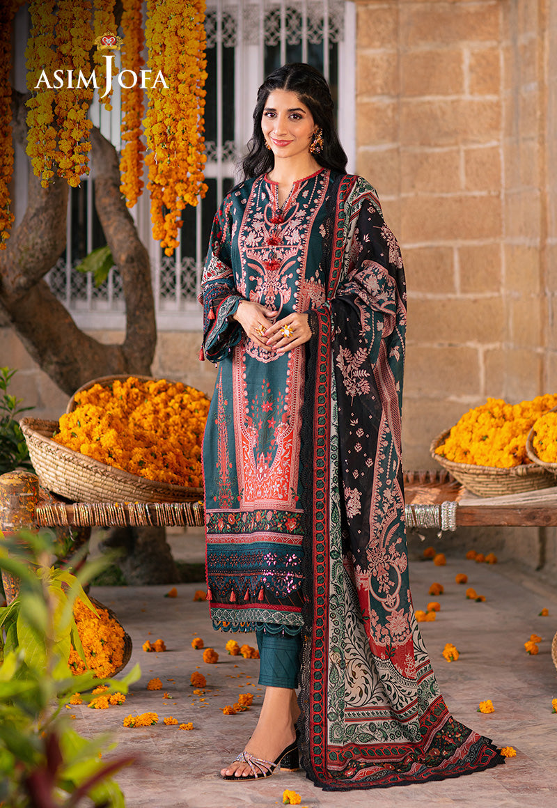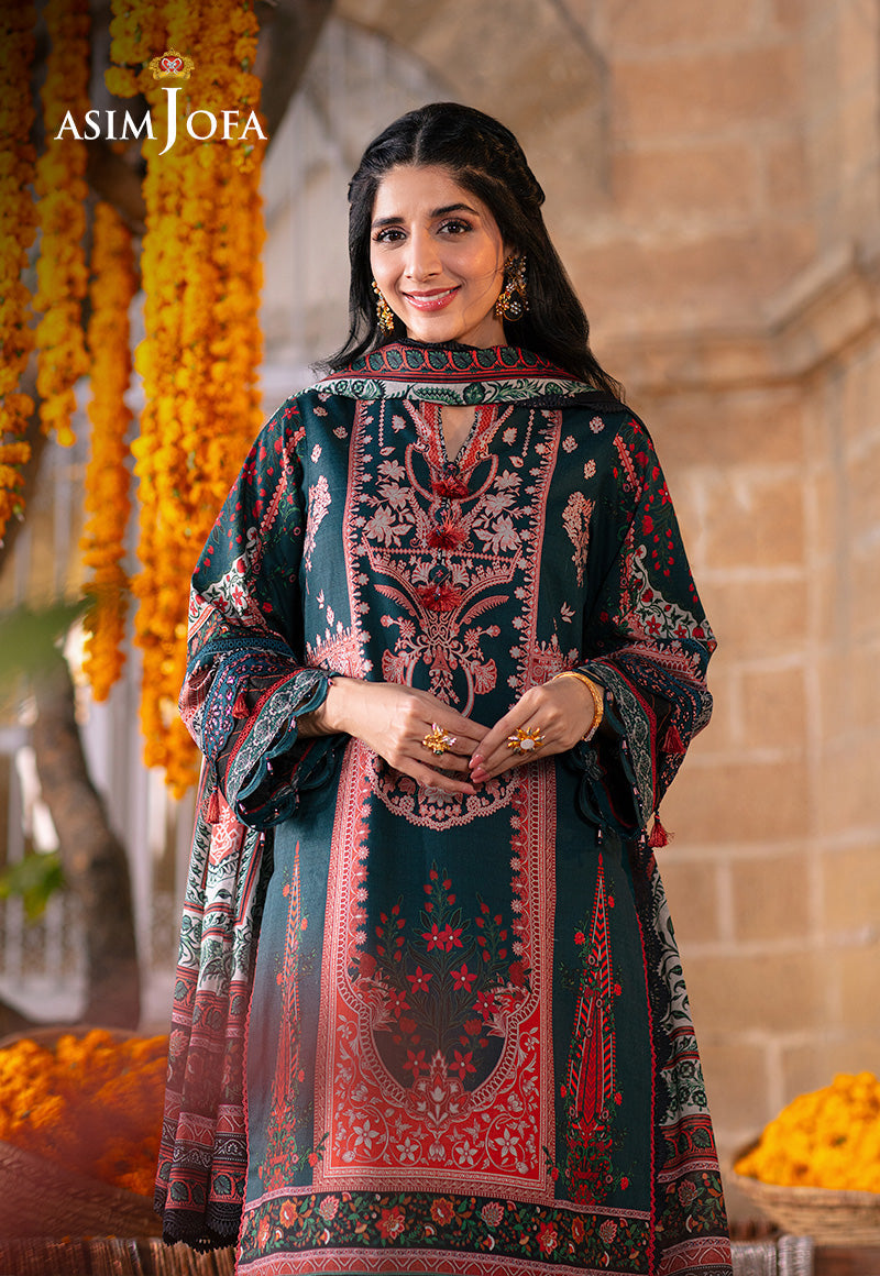 Immerse yourself in the allure of summer with our captivating creation from the "Aira - Summer Printed Collection." this teal green ensemble features intricate embroidery along the borders of the shirt and sleeves each thread shimmering with elegance. The digital printed shirt showcases a delightful array of contemporary motifs reflecting the vibrant spirit of modernity. Draped in the same enchanting design, the dupatta completes the outfit with charm. Let Asim Jofa's craftsmanship elevate your style to new heights of sophistication.