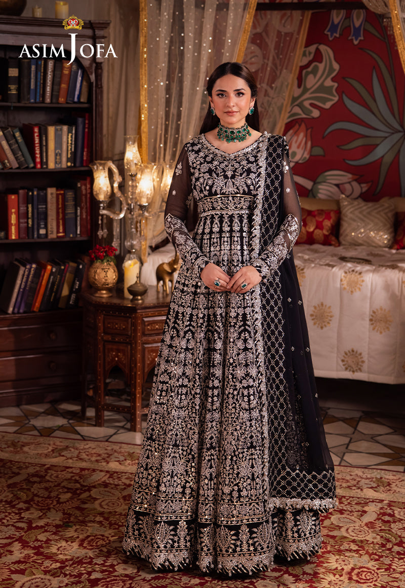 Cloaked in the mystery of midnight, this ensemble is a celestial dance of black. The embroidered blossoms of this Peshwas, like moonlit gardens, bloom in a tapestry of light gold sequins and ivory threads. The dress, a constellation of light-catching sequins, is a starlit canvas. Draped with an embroidered dupatta as soft as a moonbeam, this look is a nocturnal reverie, fit for a queen of the night.