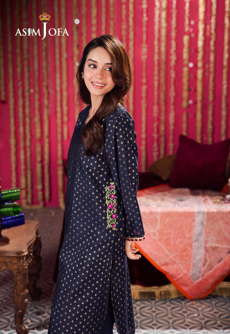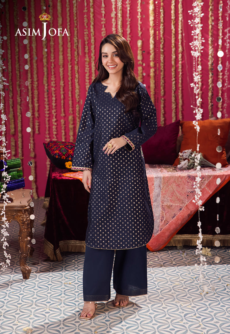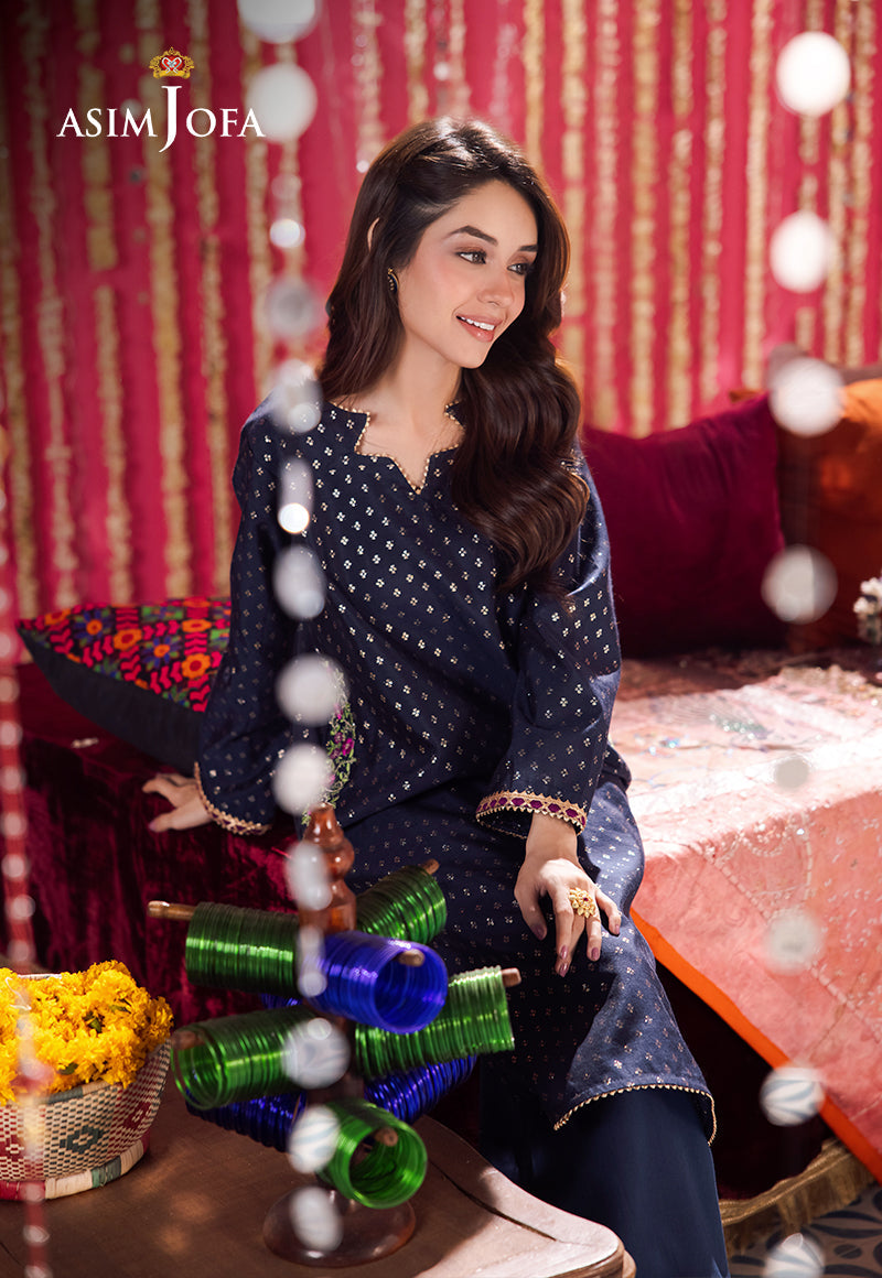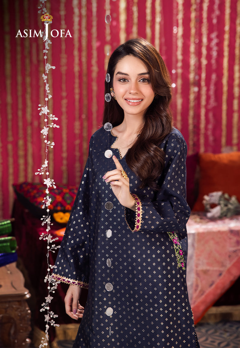 This dress captures the refreshing essence of a seaside escape. The vibrant blue color pops with summery energy, while the minimalistic zari motifs on jacquard gives it a joyous touch. The shirt features a star shaped neckline giving it an edge without compromising on the comfort. This dress is perfect for a celebratory occasion
