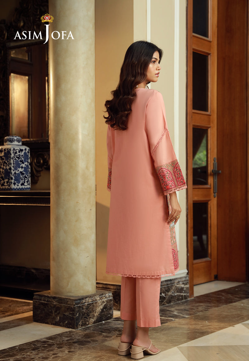 Radiate warmth and optimism in this peach-hued ensemble. The soft, inviting color complements your natural glow. The printed shirt is like delicate petals blooming on a summer day. This outfit is perfect for a picnic in the park or an afternoon shopping spree.