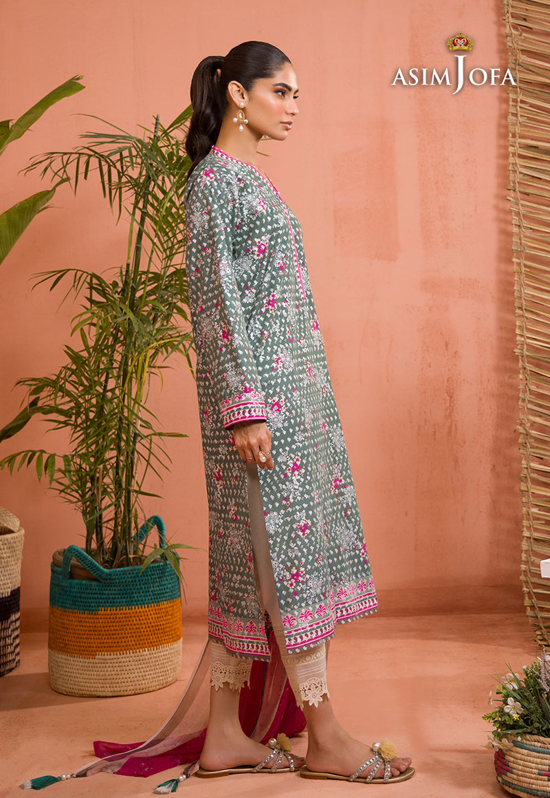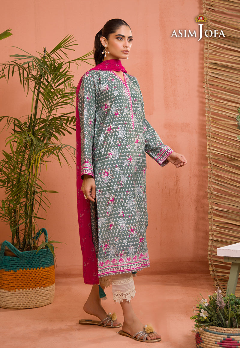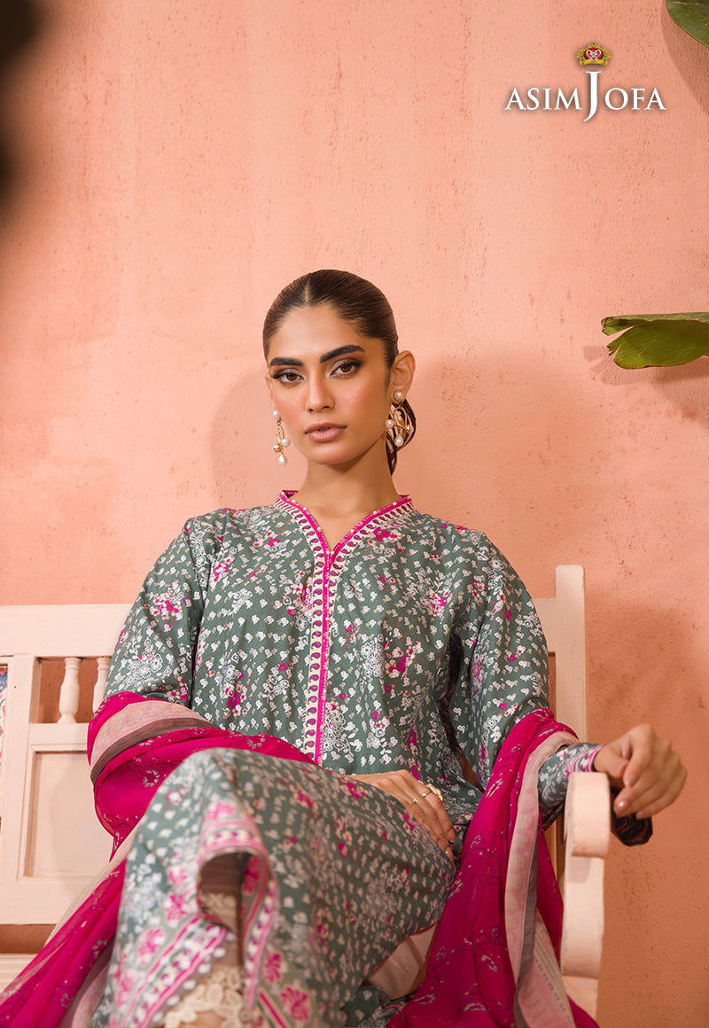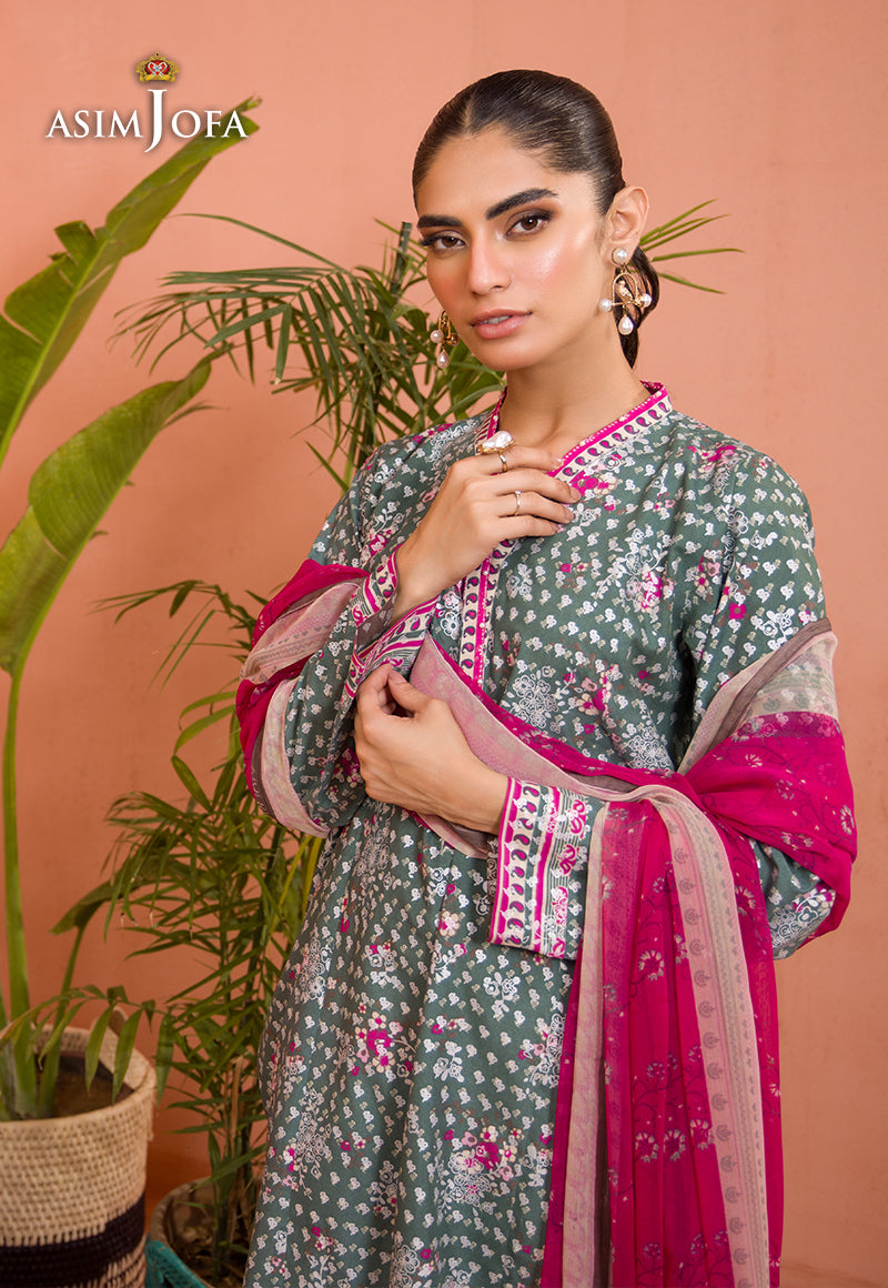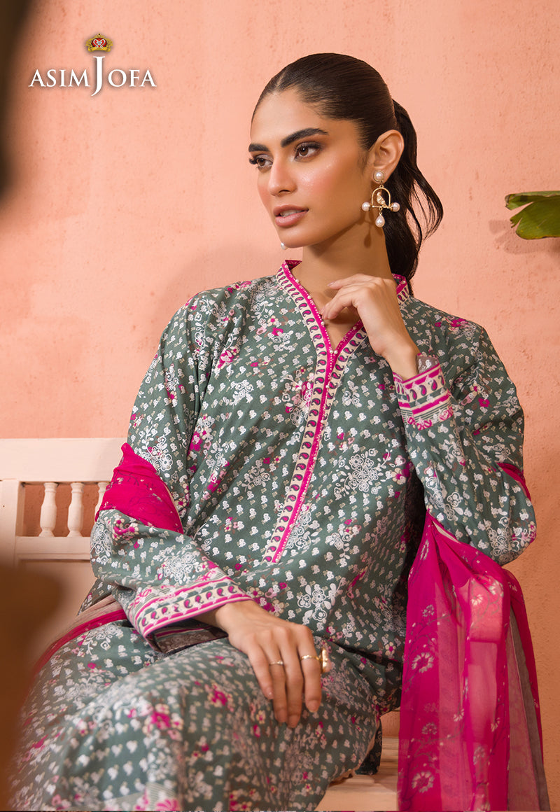 Upgrade your style with this two-piece: forest green shirt and deep pink dupatta, adorned with floral bouquets and golden motifs.
