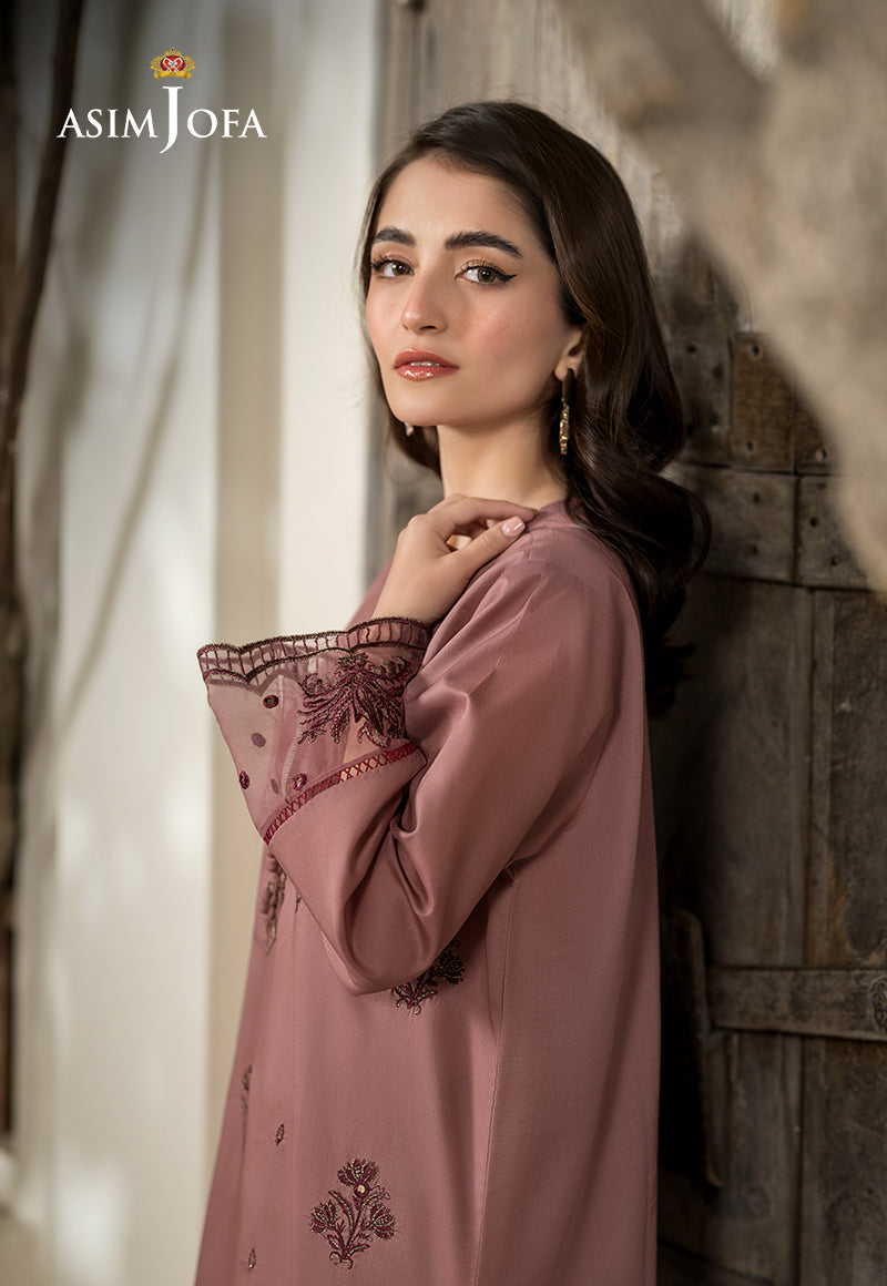 Step into refined elegance with this mocha ensemble. The shirt is beautifully adorned with intricate embroidery on the neckline and sleeves, while delicate embroidered motifs are scattered across the fabric, adding a touch of sophistication. Paired with plain trousers, this outfit strikes the perfect balance of grace and modern allure.
