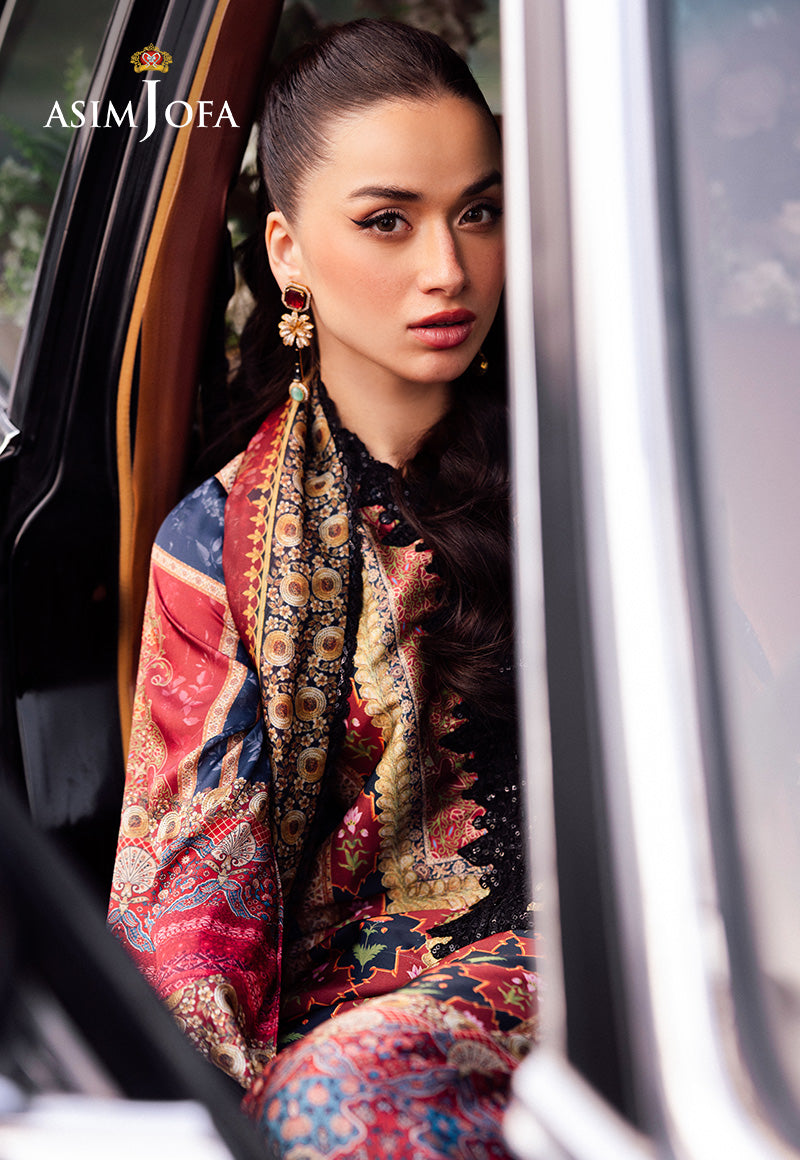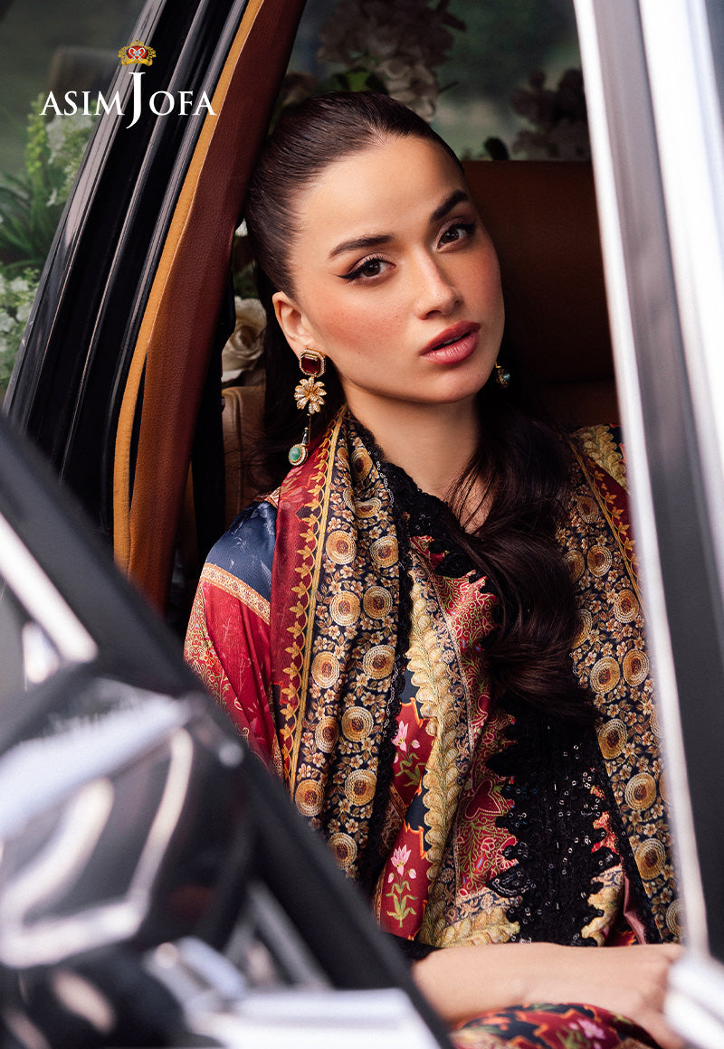 Bold and captivating, this black outfit is a canvas of uniqueness with its bohemian inspired print. The digitally printed shirt features beautifully embroidered neckline adding a touch of elegance, while the detailed embroidery on the sleeves and borders enhances its luxurious appeal. Paired with a digitally printed silk dupatta that drapes like a shadow of refined grace, this outfit is a flawless blend of dramatic charm and versatile style for both formal and casual events.