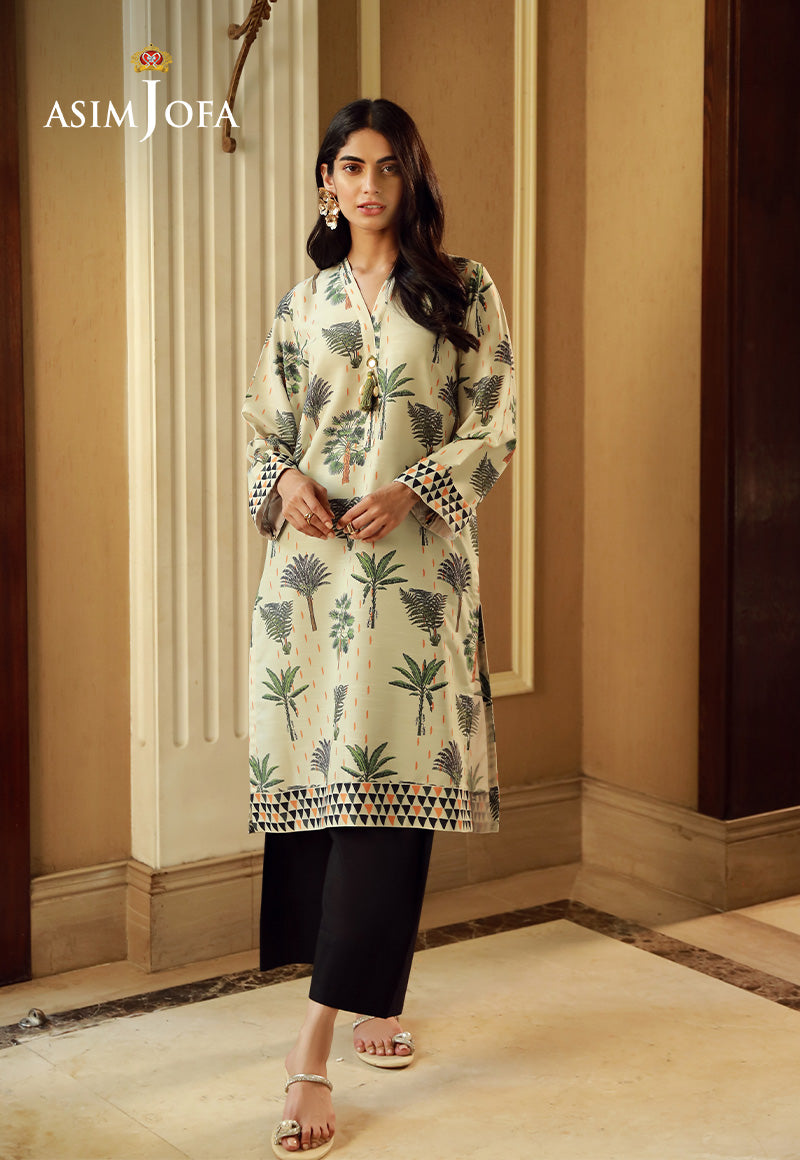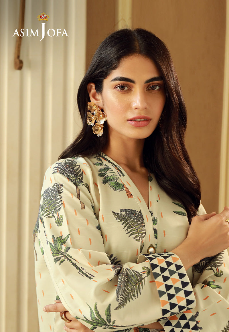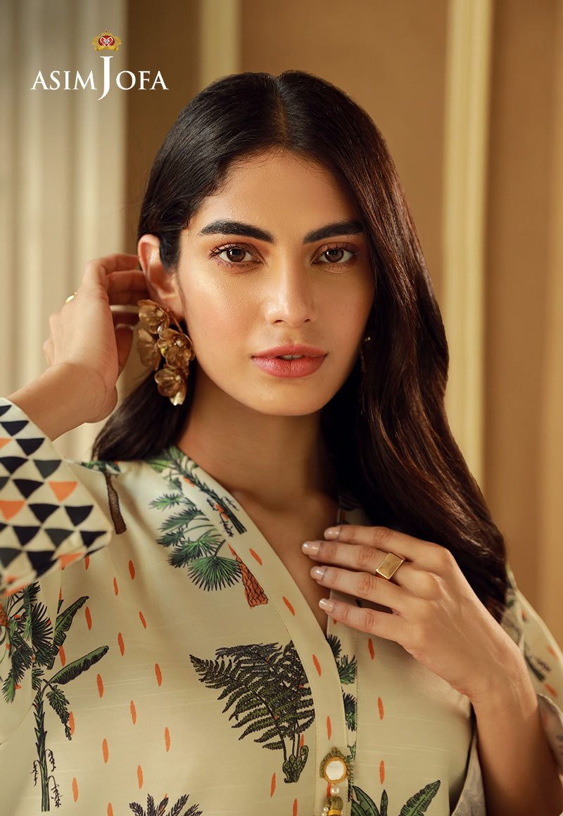 This cream colored shirt exudes a sense of chicness. The printed shirt is like a canvas painted with gorgeous patterns, adding a vibrant touch to the overall look. This look is perfect for a day out with friends.