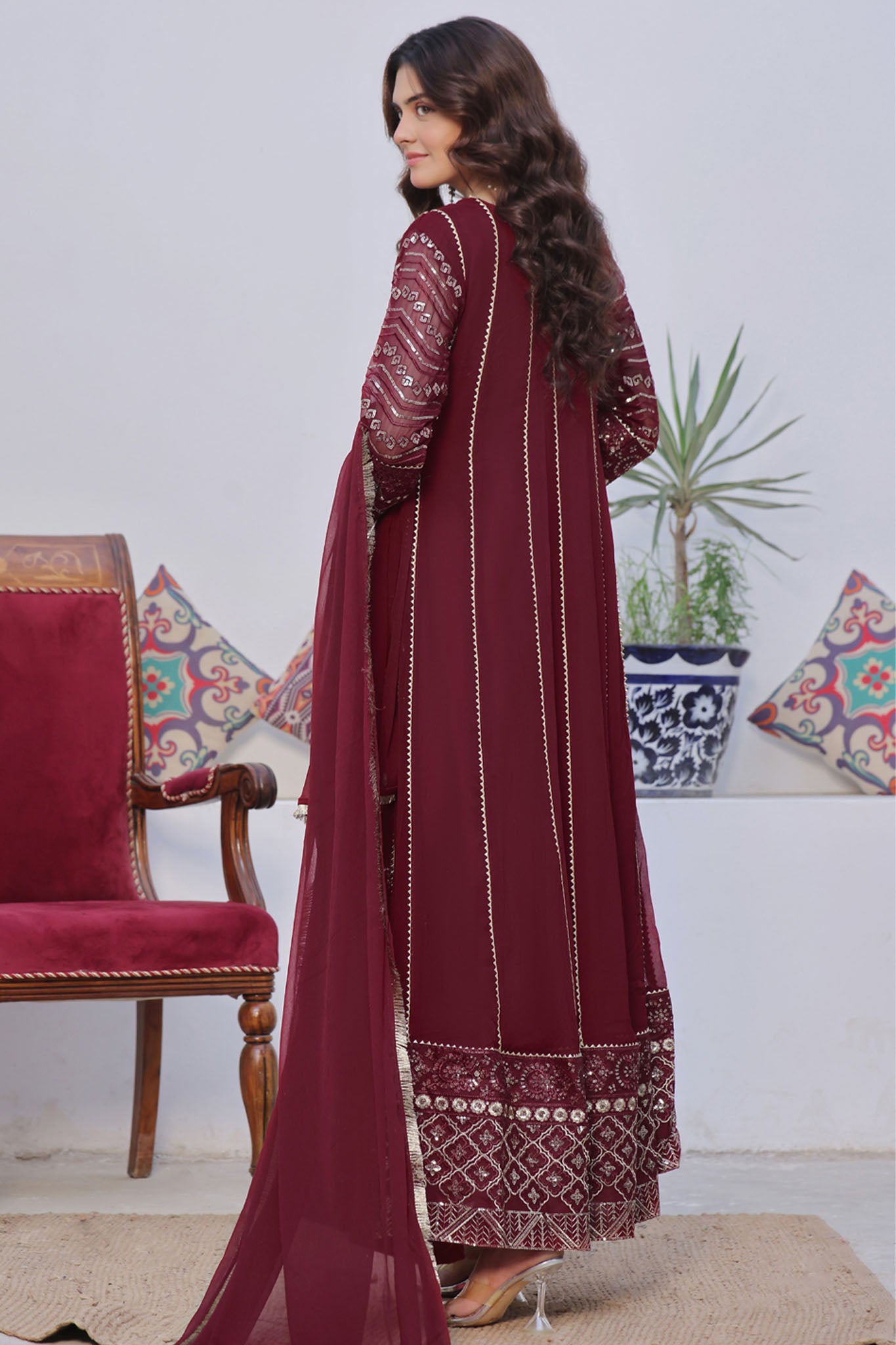 Eid E Milan By Al Siyaab Stitched 3 Piece Formals Suit-Chaandni -Maroon