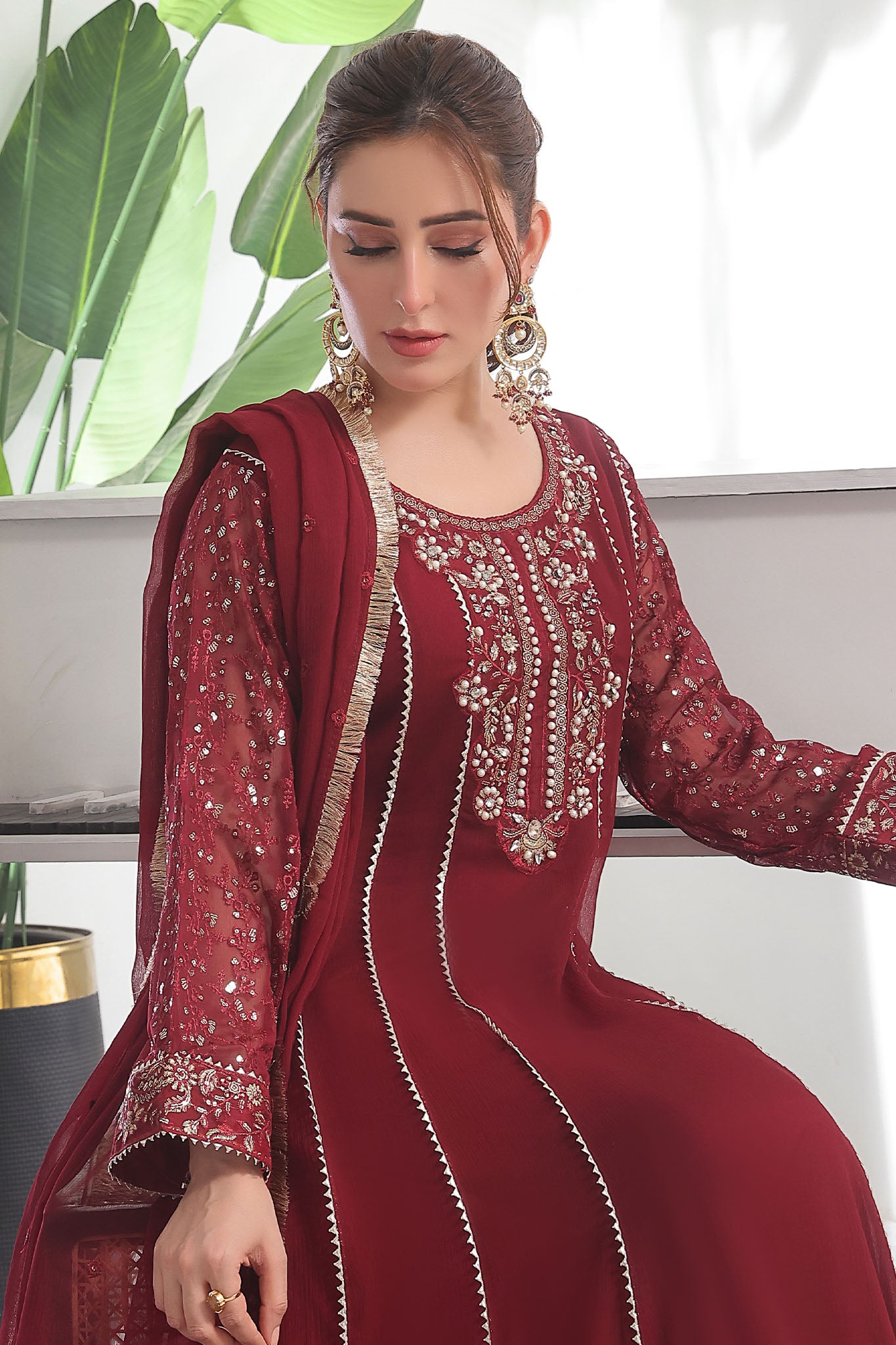 Eid E Milan By Al Siyaab Stitched 3 Piece Formals Suit-Raani-Maroon