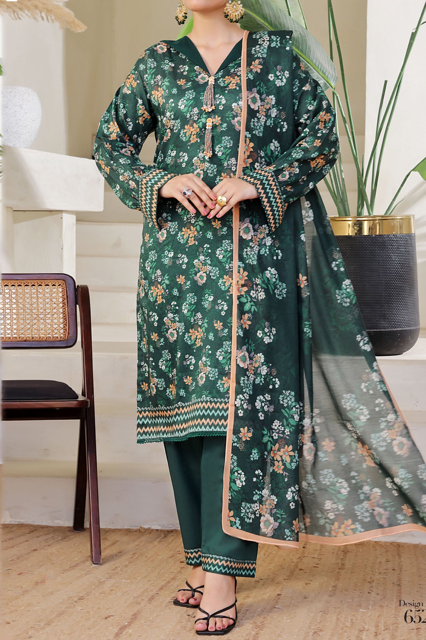 Aizal Stitched 3 Piece Printed Lawn Collection'2025-A-P-652-GREEN