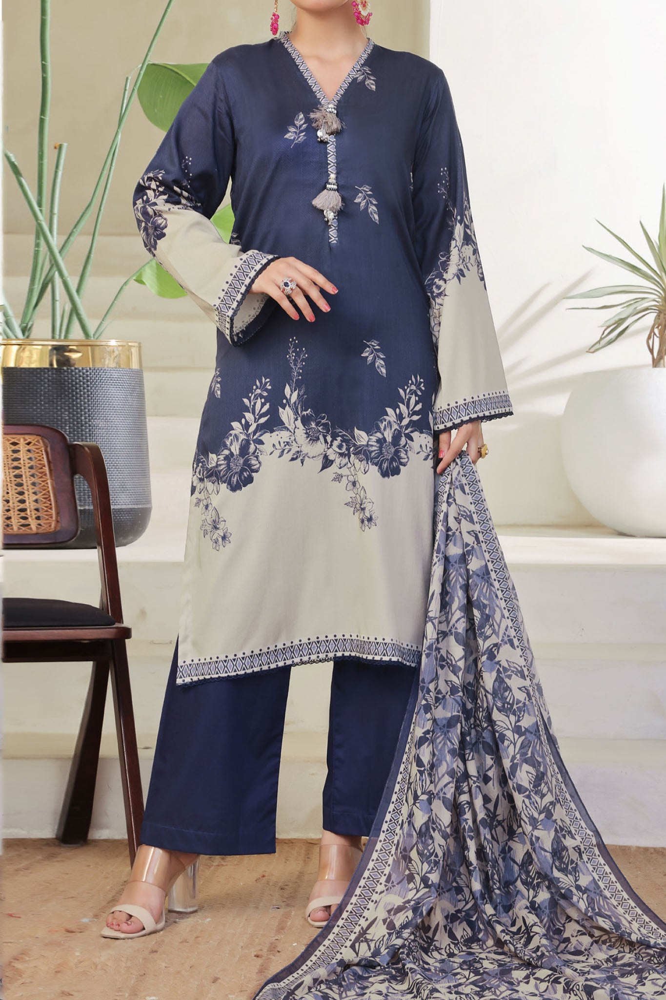 Aizal Stitched 3 Piece Printed Lawn Collection'2025-A-P-656-BLUE