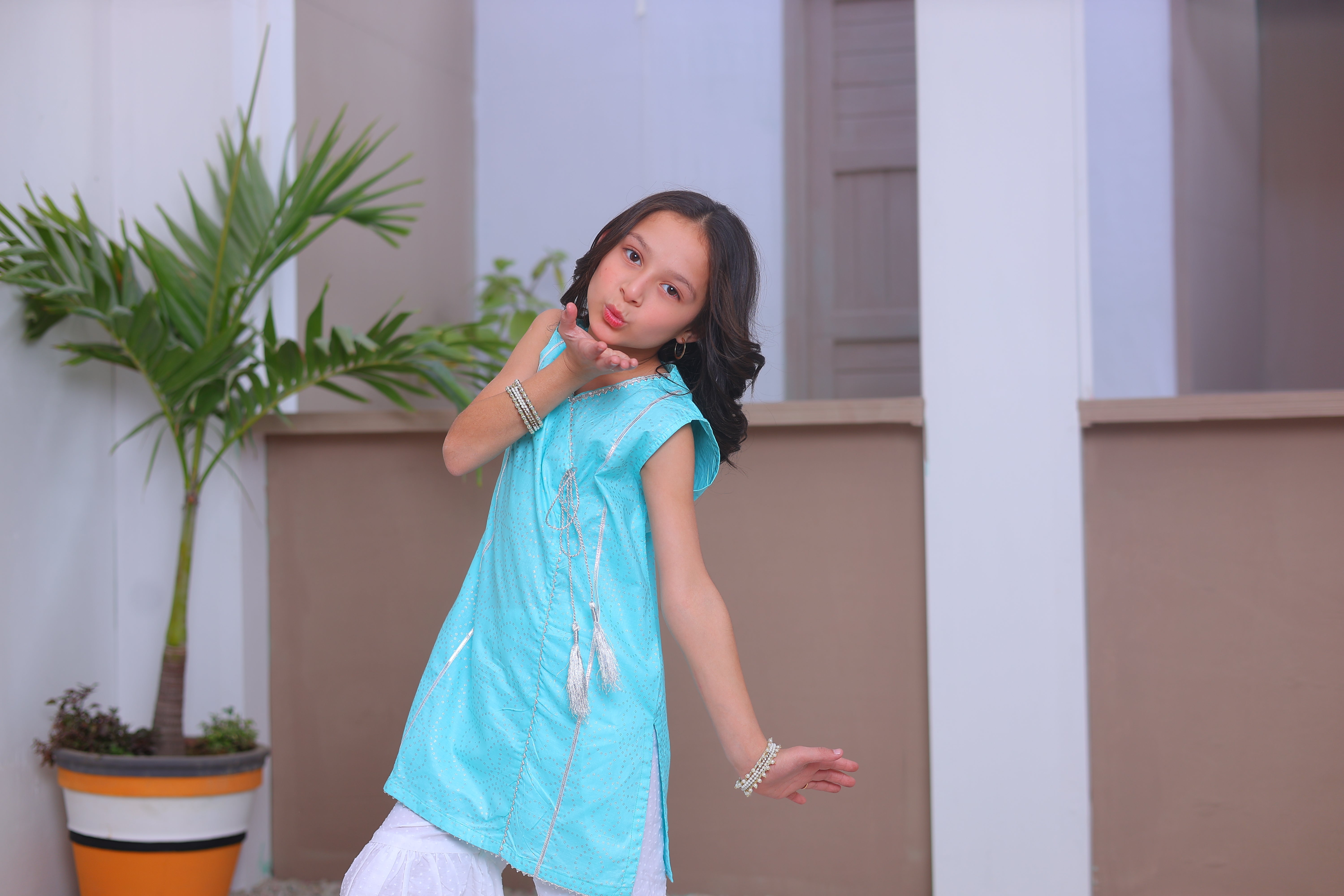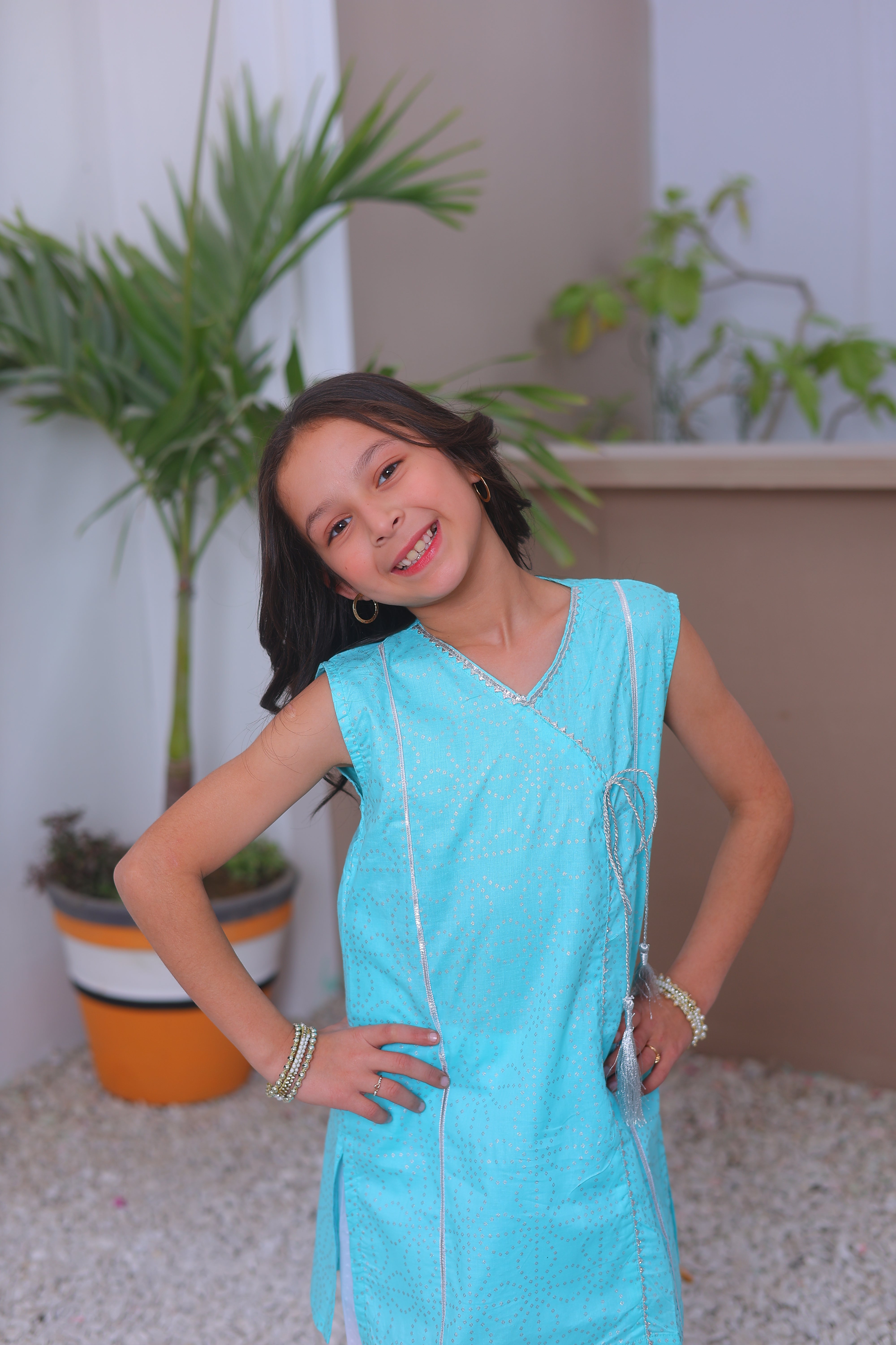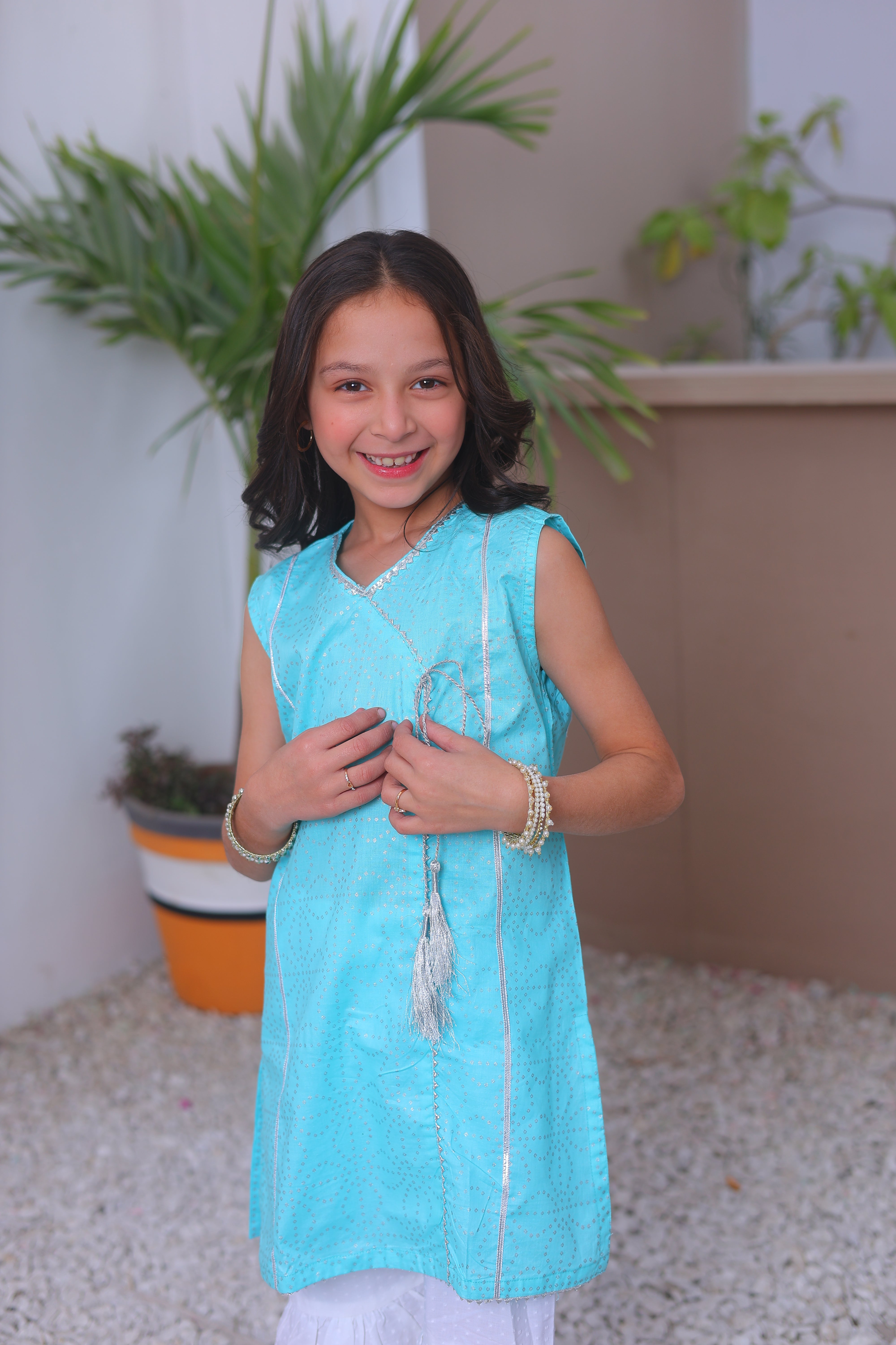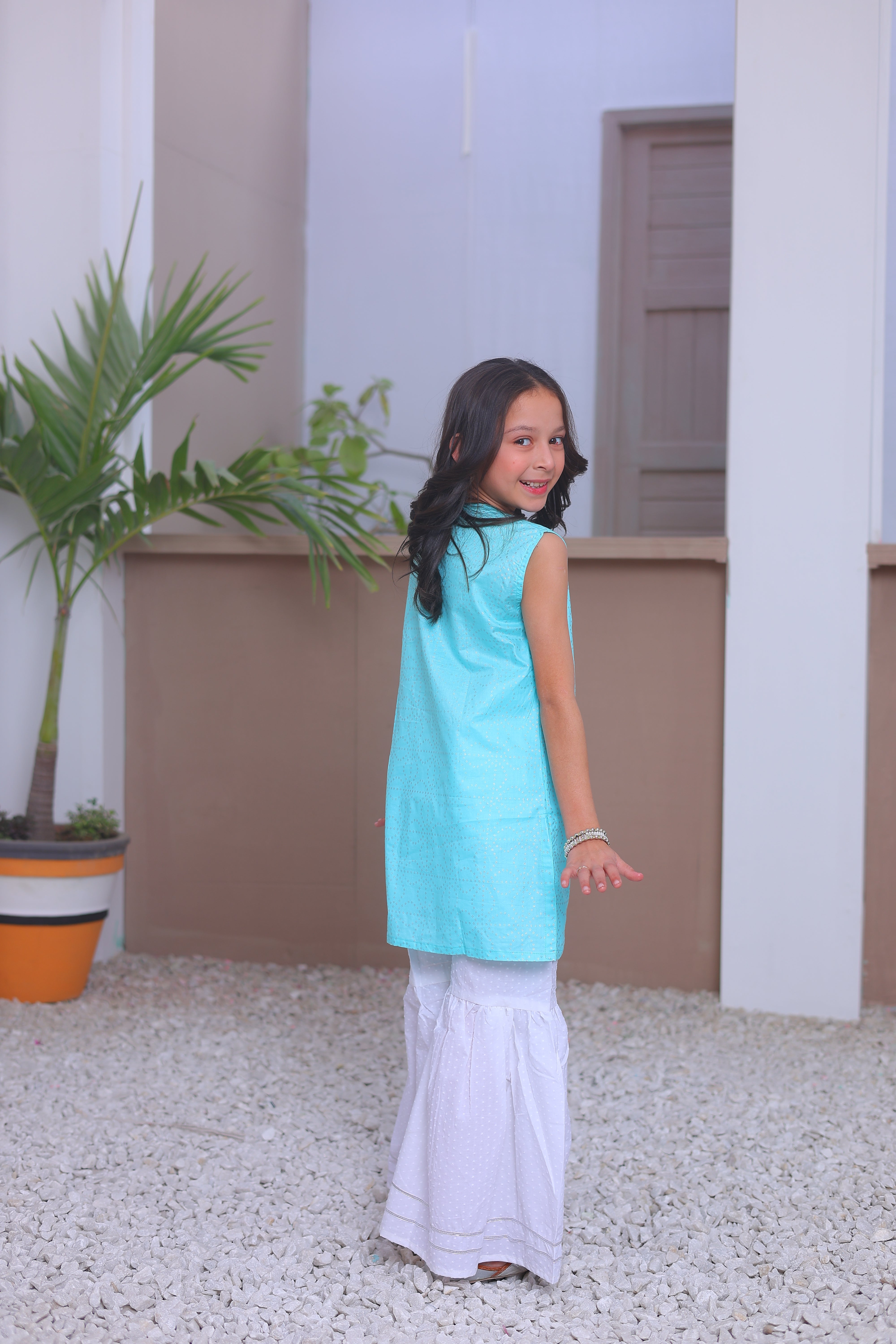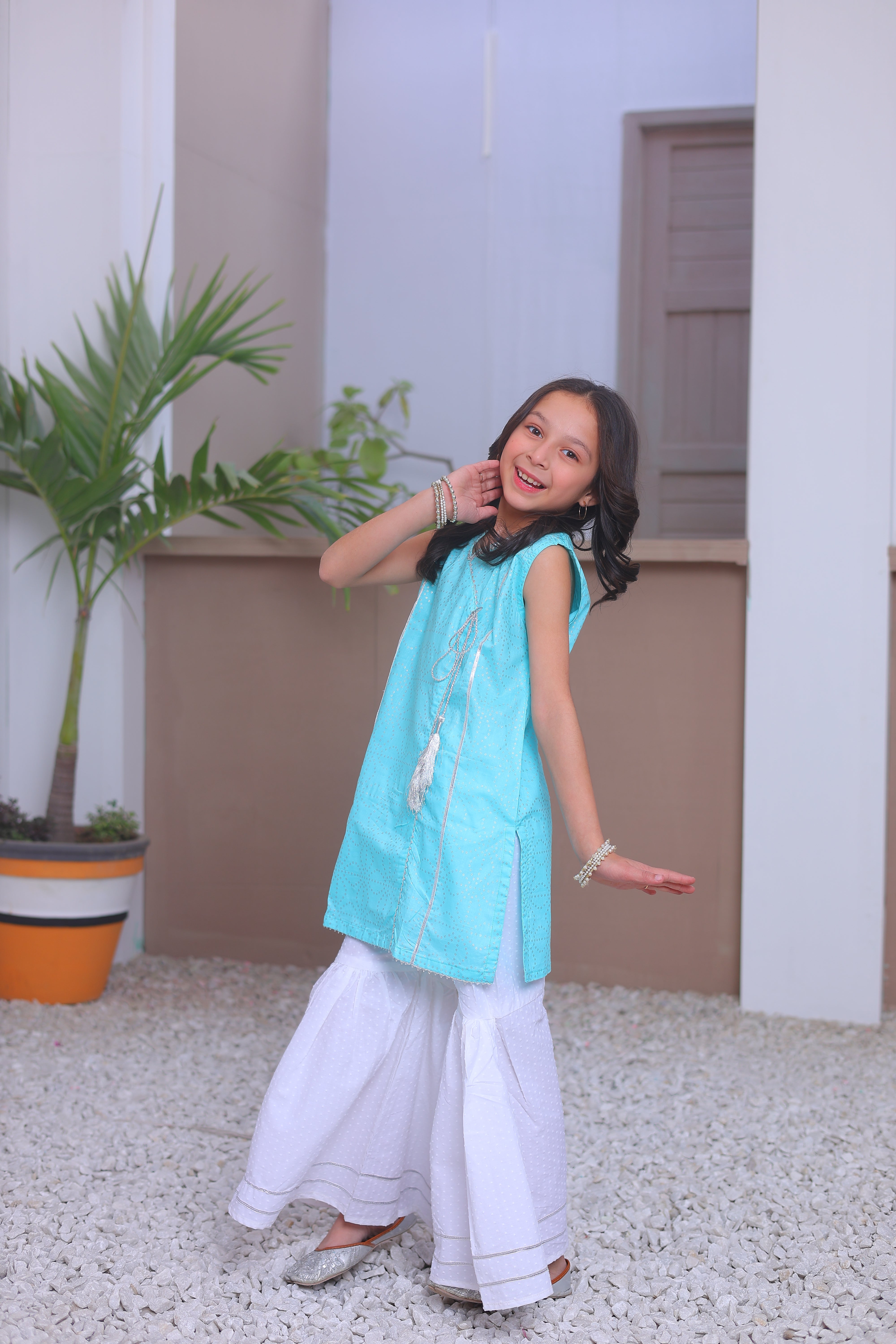 Elevate your child's fashion game with Khanak's Stitched Cotton lawn Shirt and Gharara set. Crafted specifically for kids, this sophisticated ensemble showcases high-quality cotton lawn fabric, offering a perfect blend of style and comfort. Ideal for both casual and semi-formal events, it’s a must-have addition to their wardrobe
