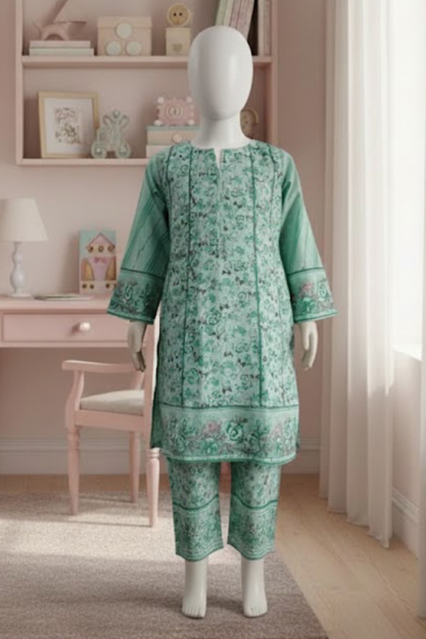 Aroob Stitched 3 Piece Kids Cotton Collection'2025-D-0225-Green