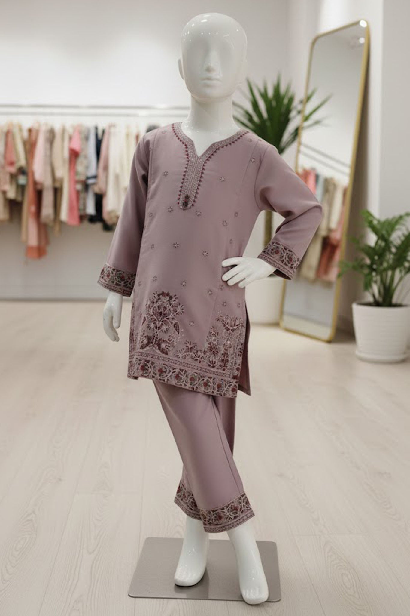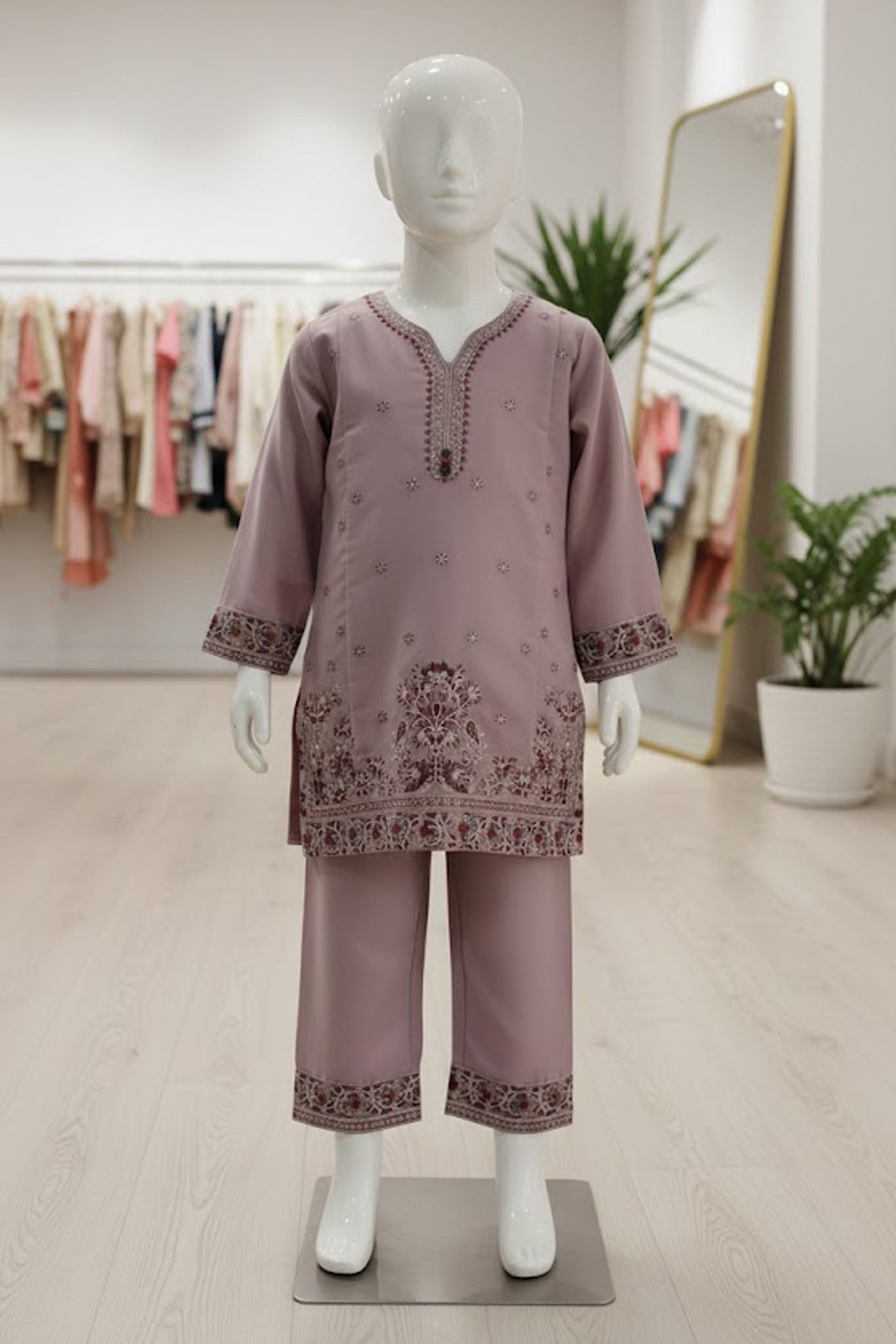 Aroob Stitched 3 Piece Kids Formals Collection'2025-D-0231-Tea Pink