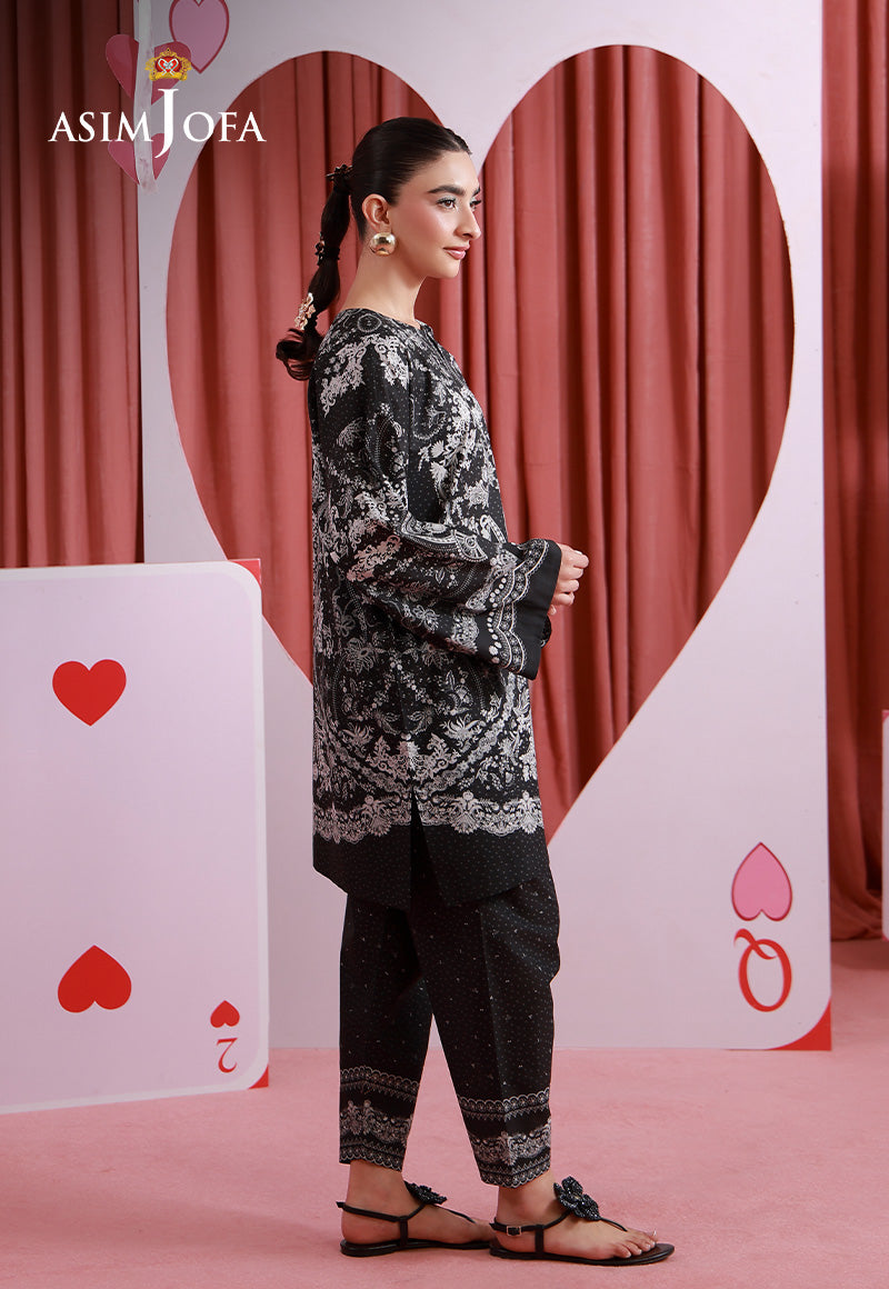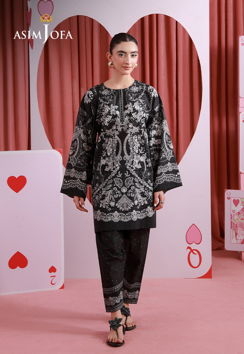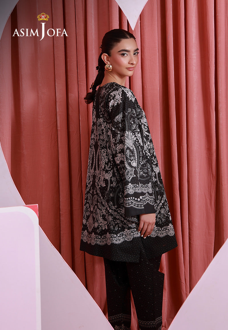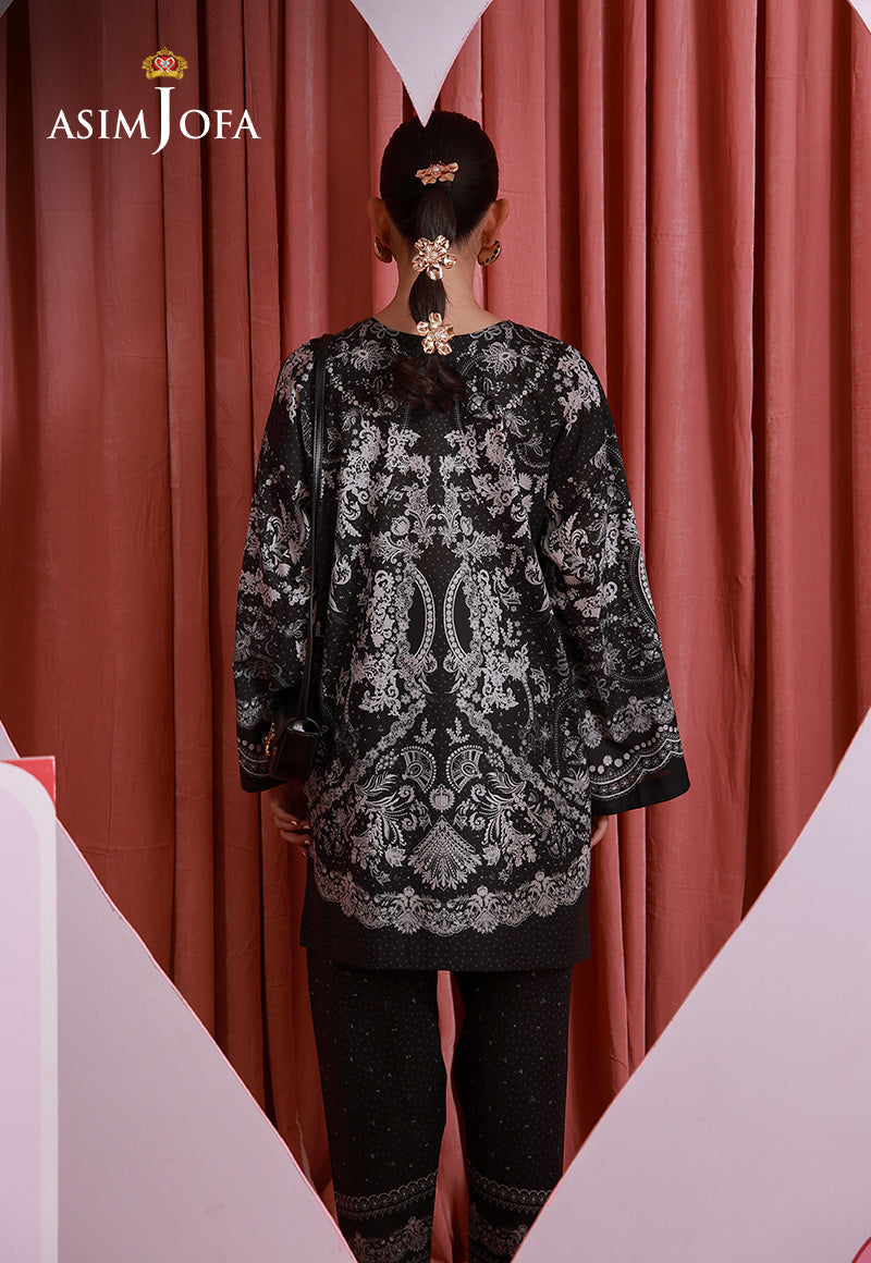 Bold and beautifully balanced, this monochromatic black ensemble redefines statement dressing. The gorgeous print emerges elegantly against the dark base, creating a luminous contrast that commands attention. Sophisticated and modern, it’s a timeless look with undeniable impact.