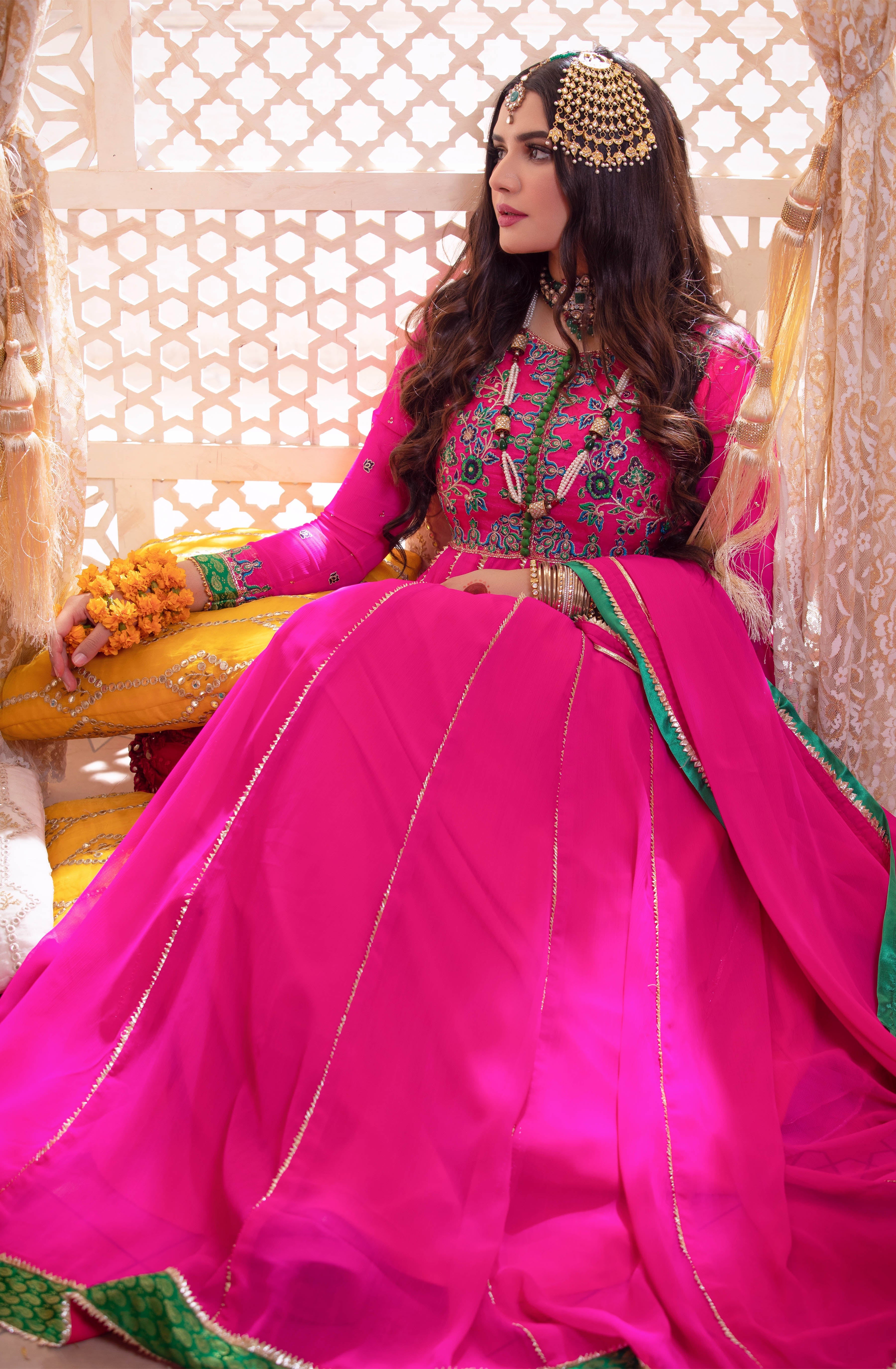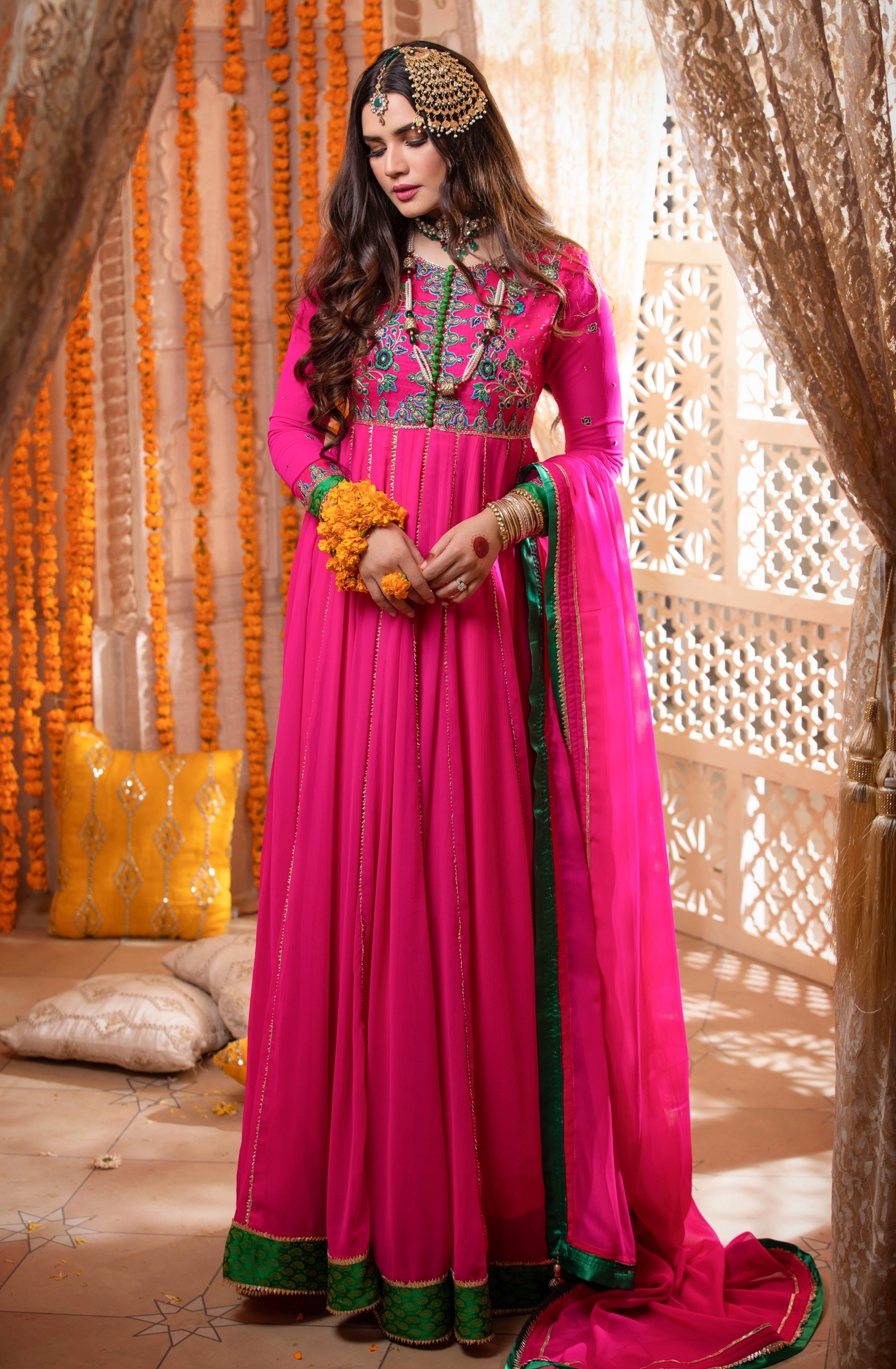 . An Absolute Show Stopper. The 'Maha-Rani' Kalidaar Pishwas Is Designed To Give A Slender Waistline An Extra Flairing Kalis For That Unforgetable Twist And Stunning Silhoutte.
