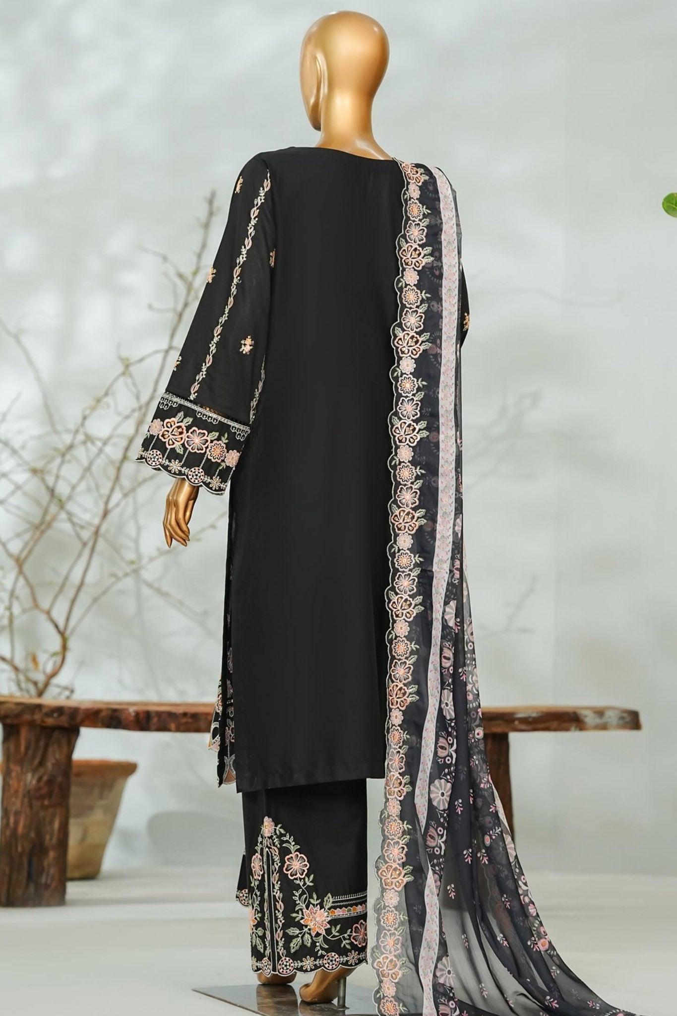 Bin Saeed Stitched 3 Piece Luxury Applique Kari Lawn Suit-D-2810-BLACK