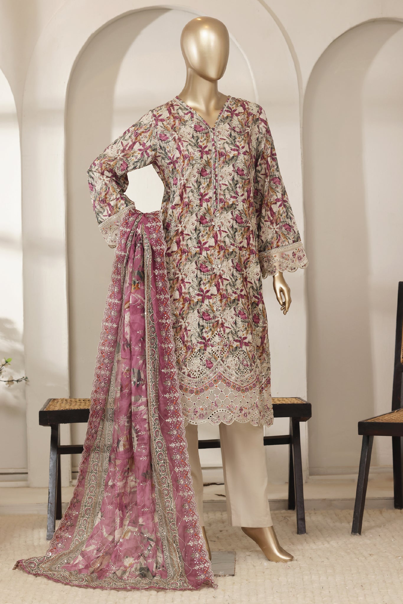 Bin Saeed Stitched 3 Piece Luxury Laserkari Lawn Vol-03 Suit-WC-2806-SKIN