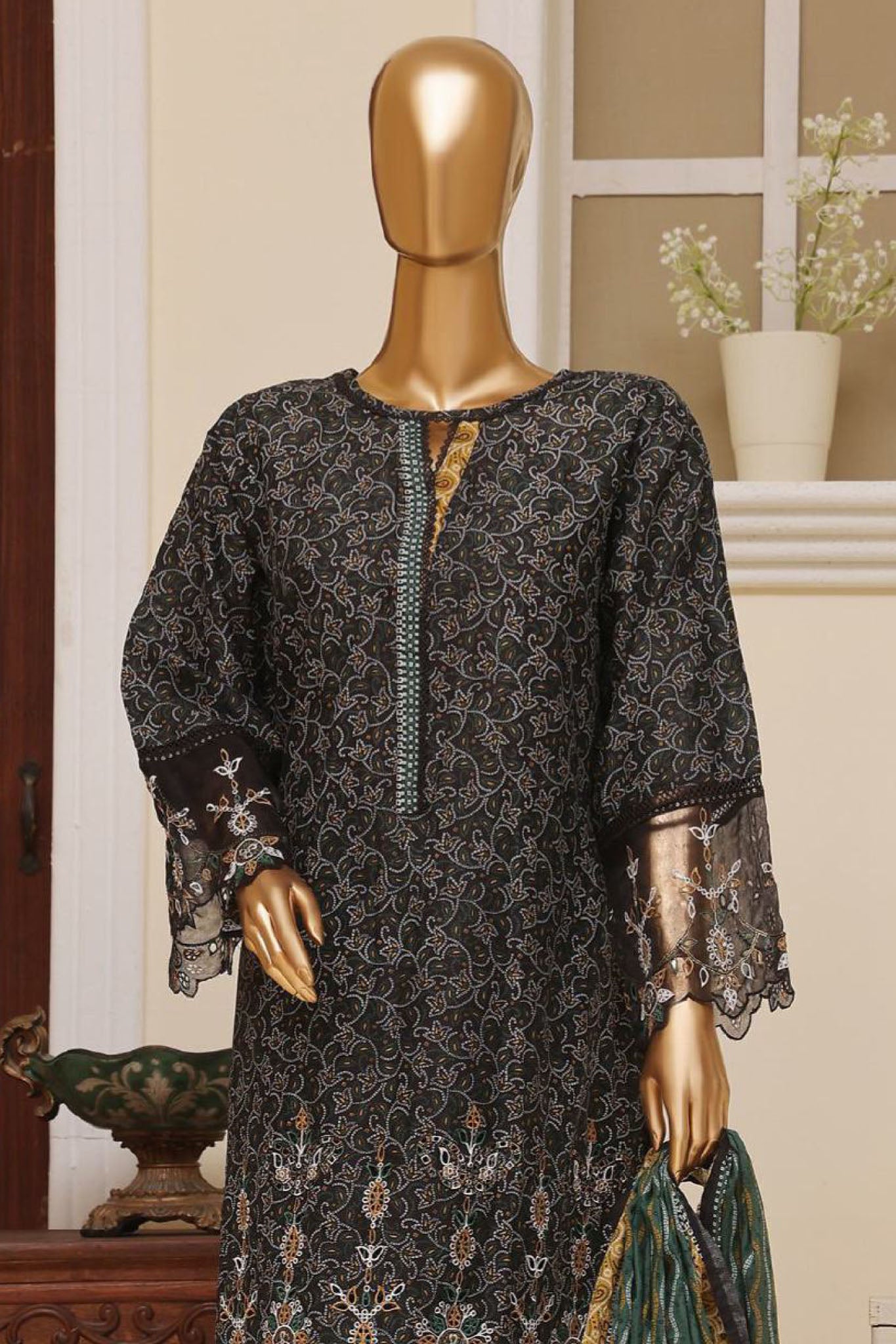 Bin Saeed Stitched 3 Piece Exclusive Emb Lawn Vol-02 Collection-SM-1581-Black