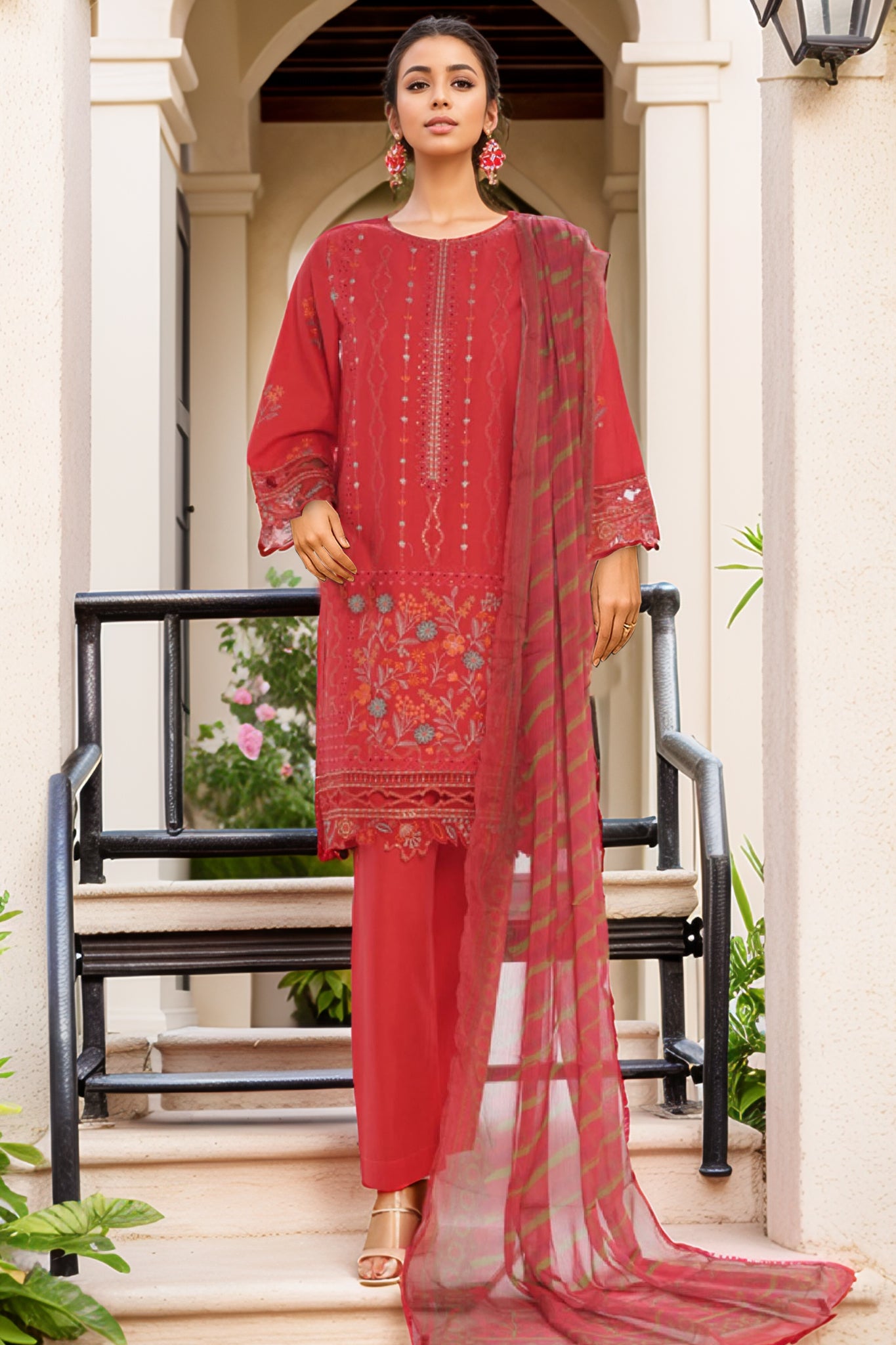 Bin Saeed Stitched 3 Piece Luxury Plain Cotton Vol-02 Collection-LF-1603-Red