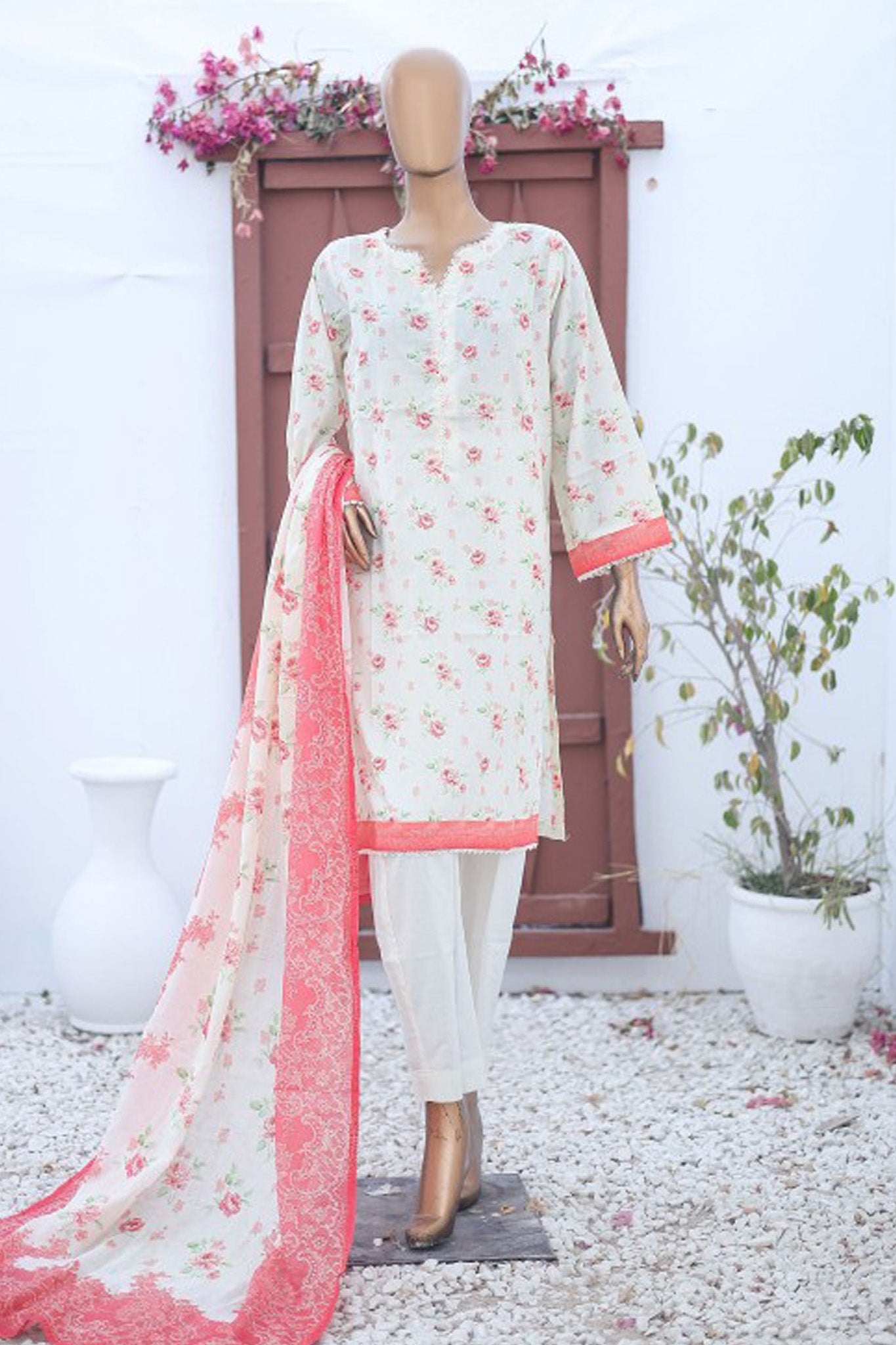 Printed Lawn Shirt Printed Dupatta Dyed Trouser