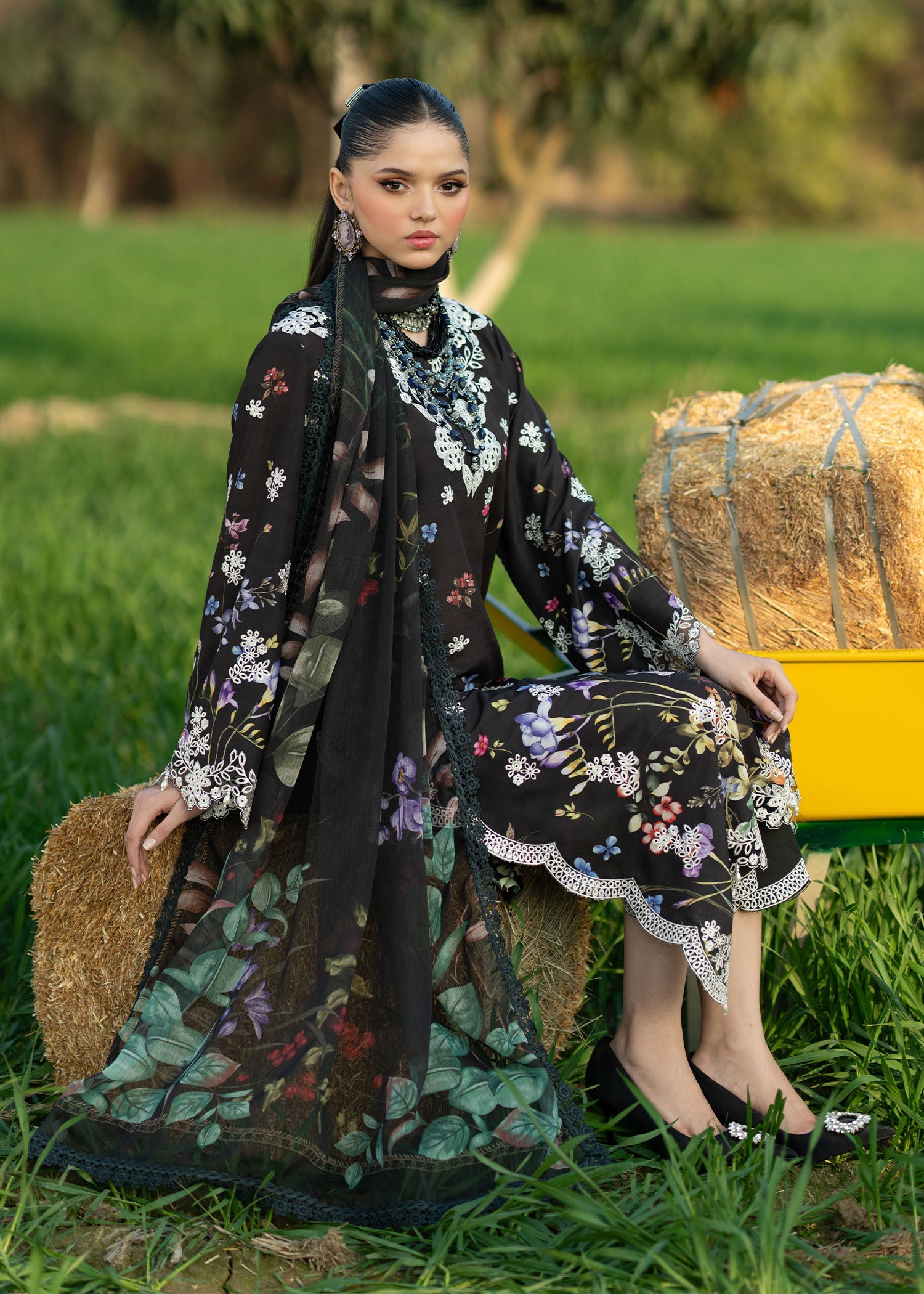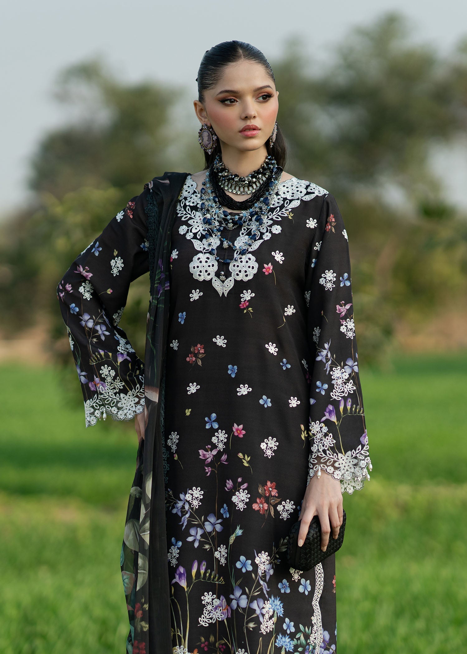 • Embroidered sleeves border (Organza)