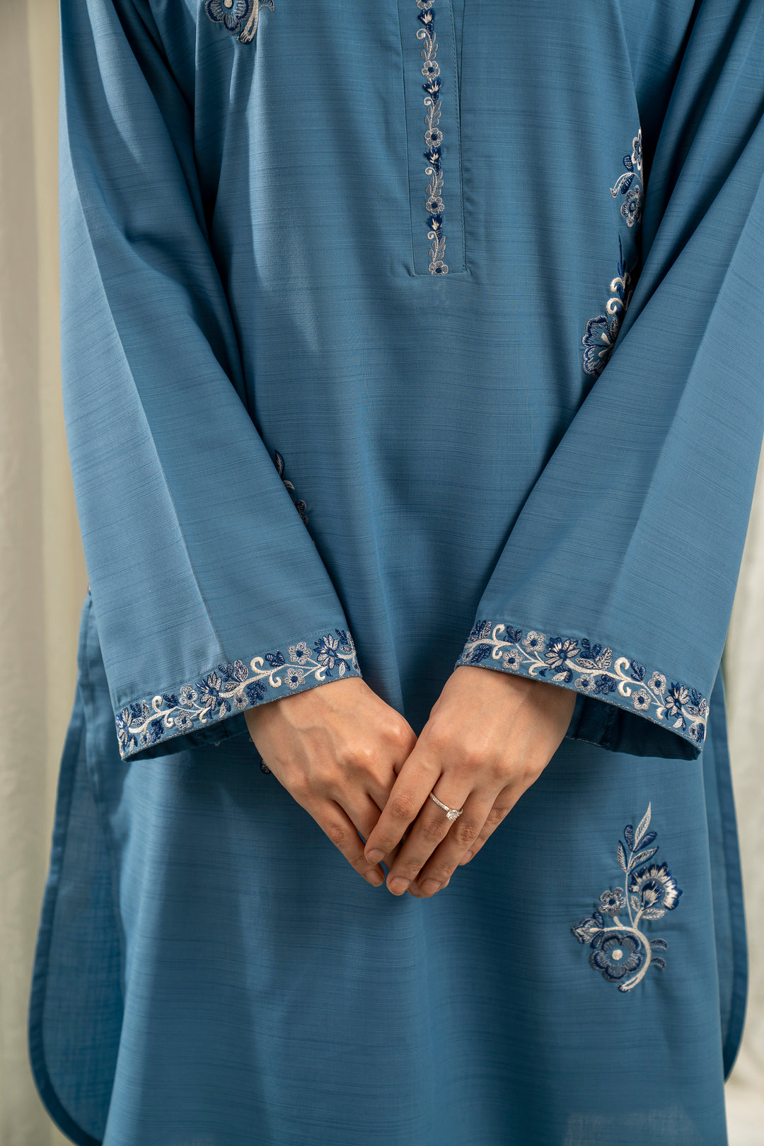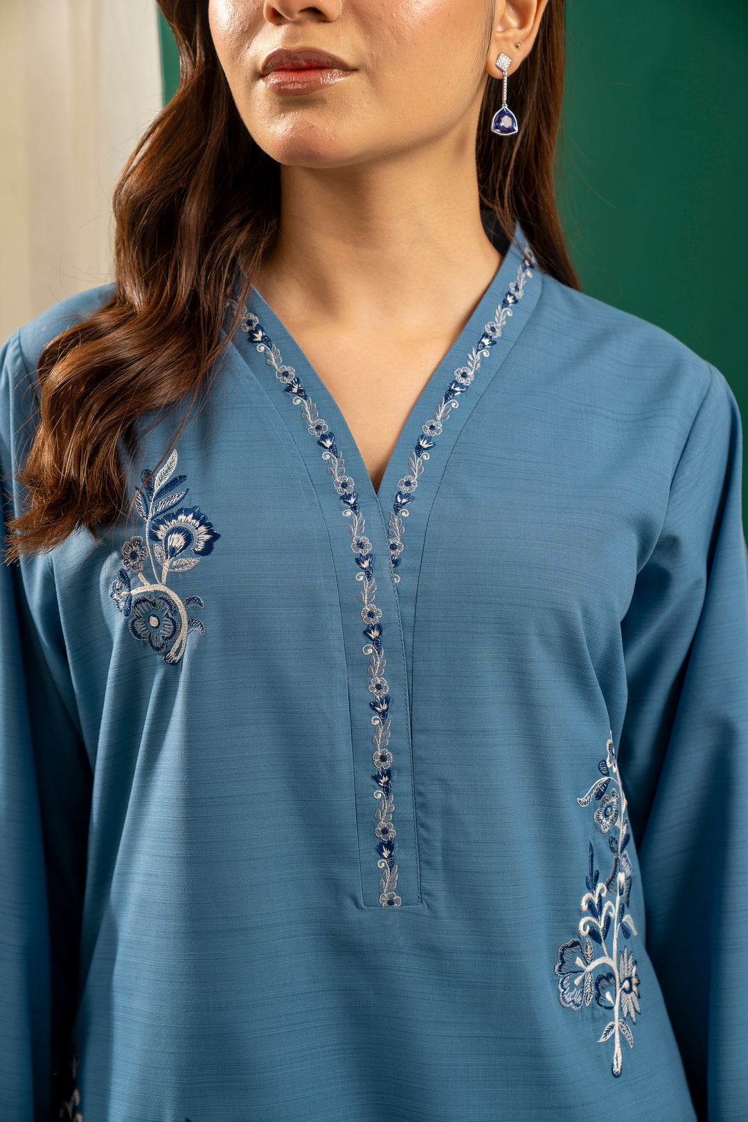 Elevate your style with our Blue Embroidered CO-ORD Set. With a beautiful embroidered design and a flattering V neckline, this set is the perfect blend of fashion and comfort. Made with a blended fabric, it offers both softness and durability. Upgrade your wardrobe with this must-have set.