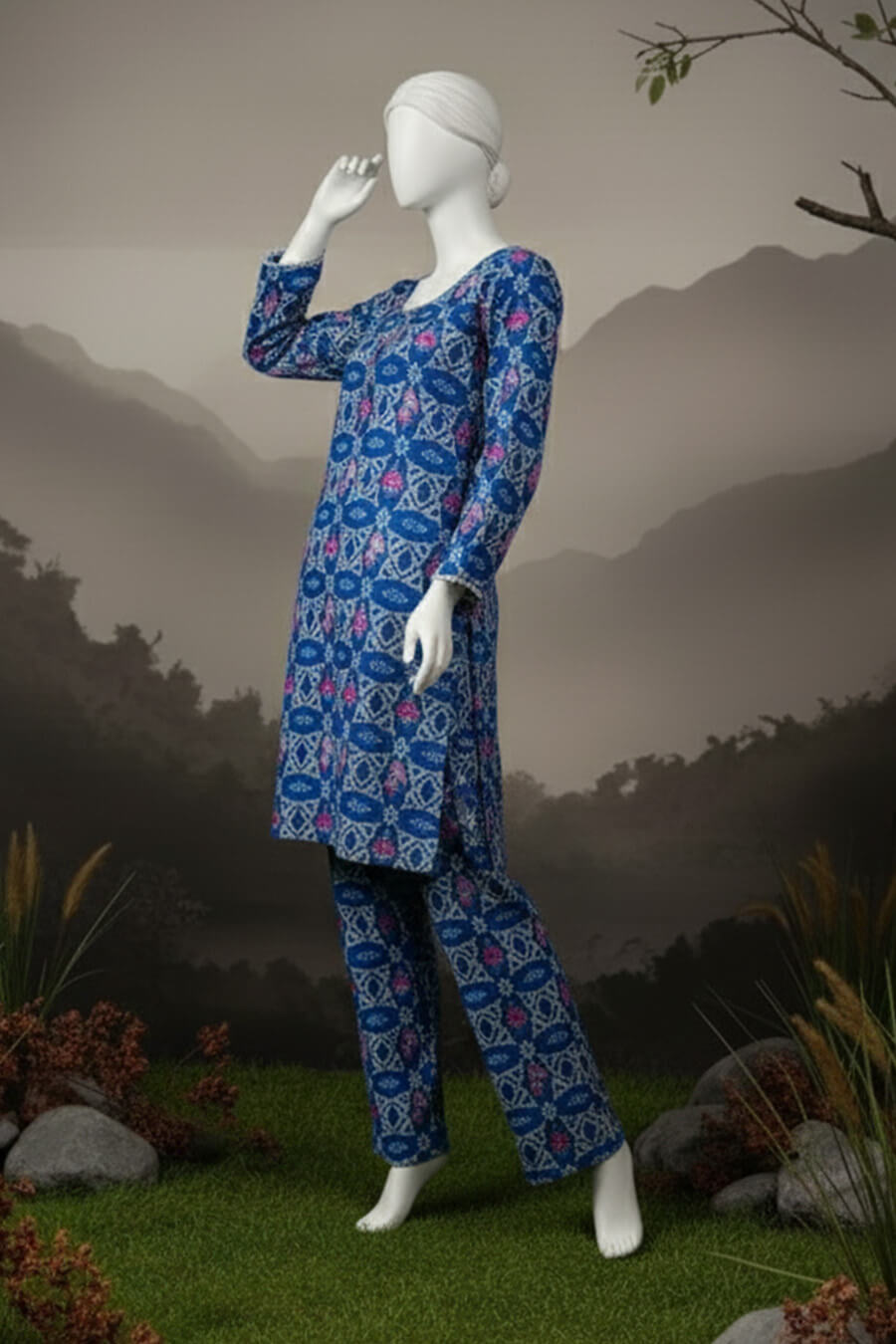 Printed Stitched 2-Piece Allover Design on Premium Bana Dora Lawn / Slub Lining Doriya Lawn