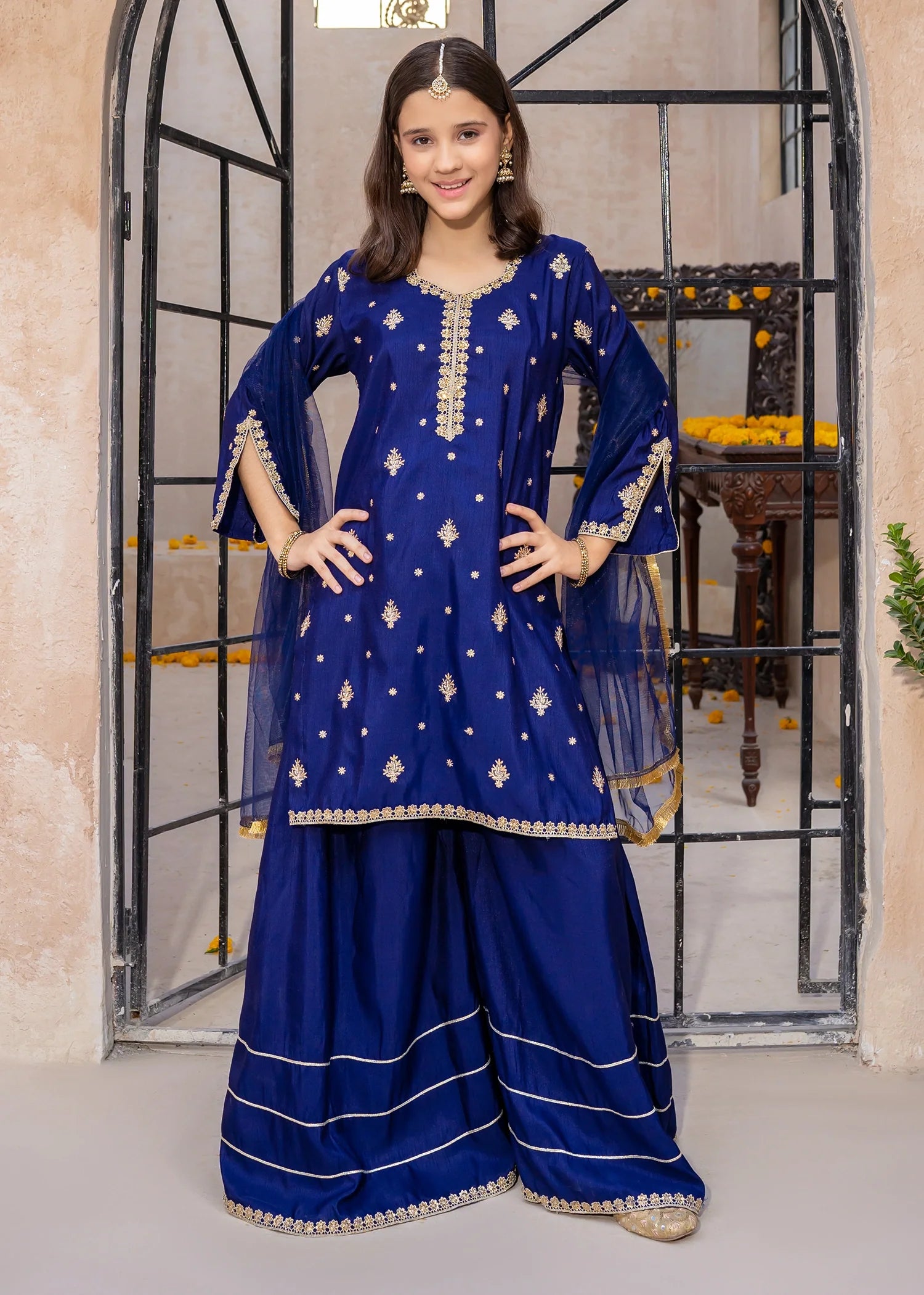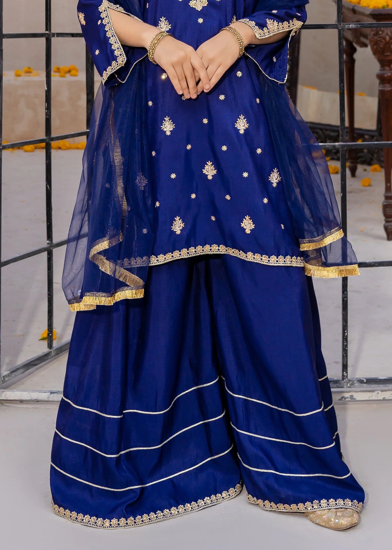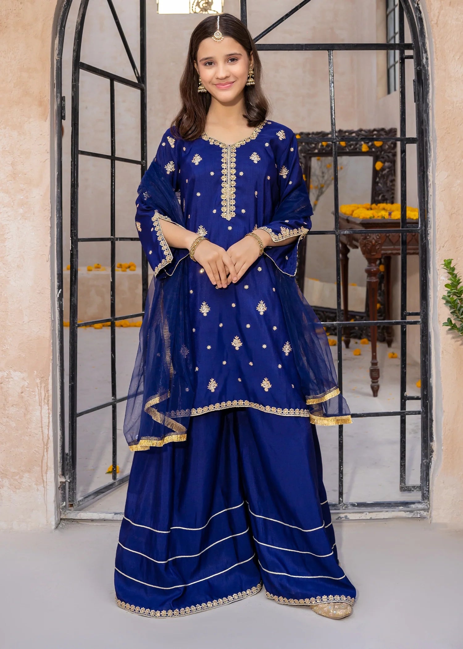 Blue Rawsilk Embroidered 3 Piece Gharara