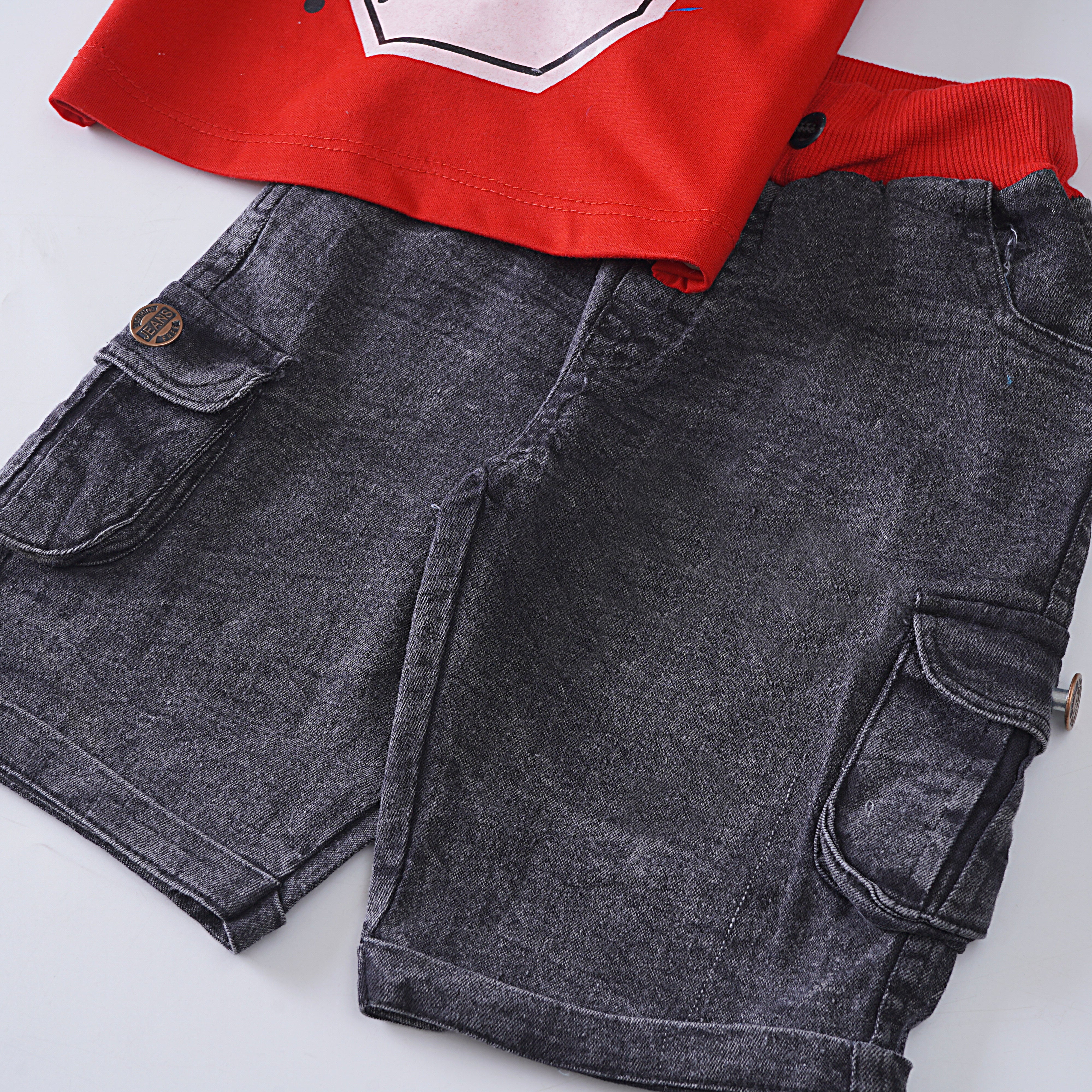 This boys half sleeves 2 piece suit is perfect for any summer occasion. Made with comfortable jersey fabric and featuring a stylish print, this set is both functional and fashionable. Ideal for boys who want to stay cool and trendy.