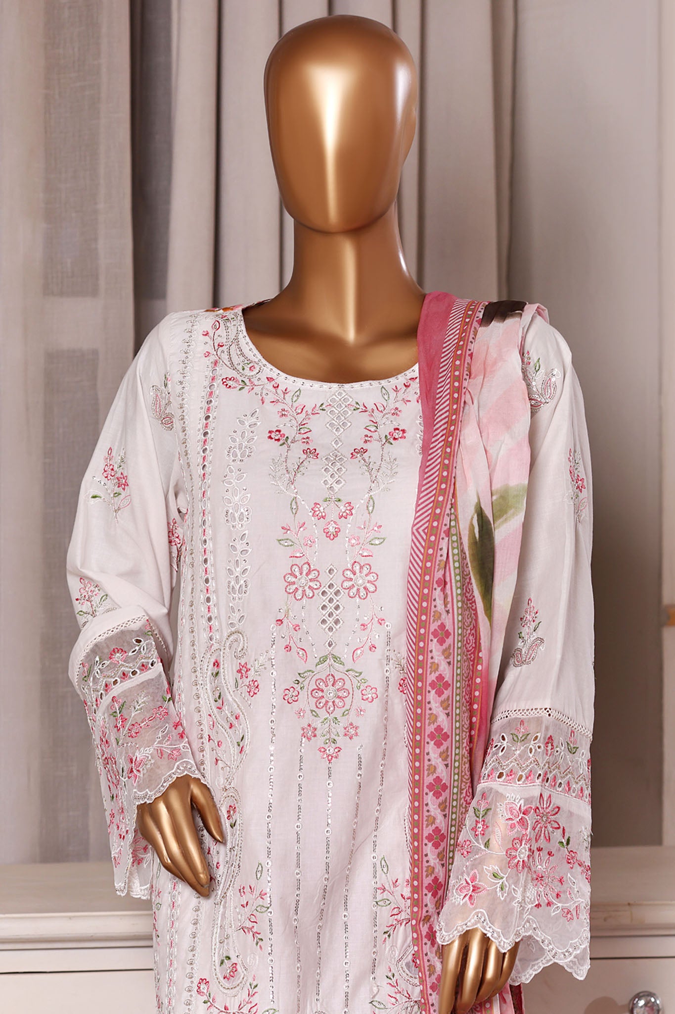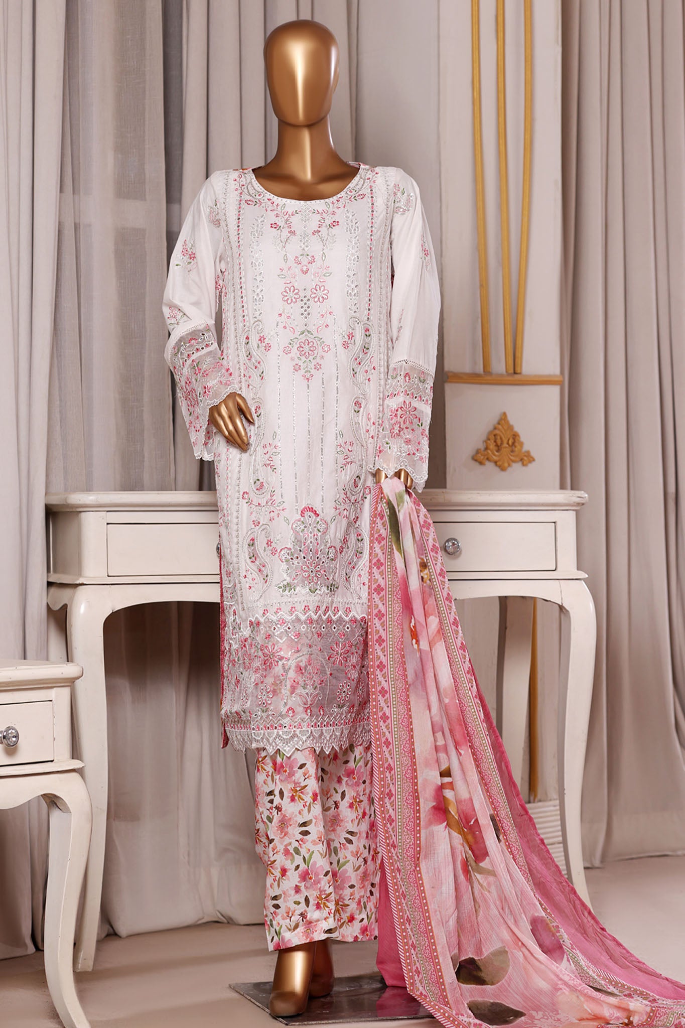 Bin Saeed Stitched 3 Piece Luxury Chikankari & Laserkari Suit-NSM-2776-WHITE