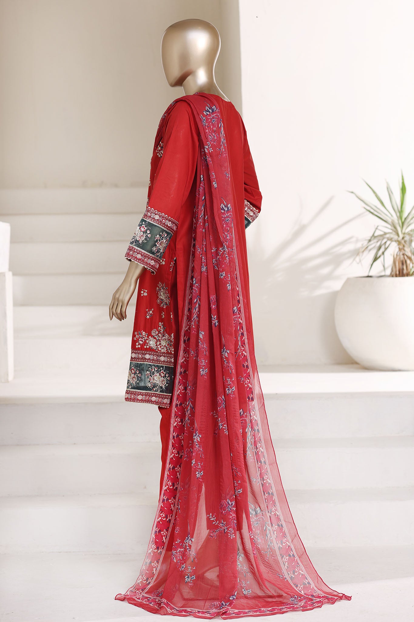 Bin Saeed Stitched 3 Piece Luxury Chikankari & Laserkari Suit-NSM-2785-RED
