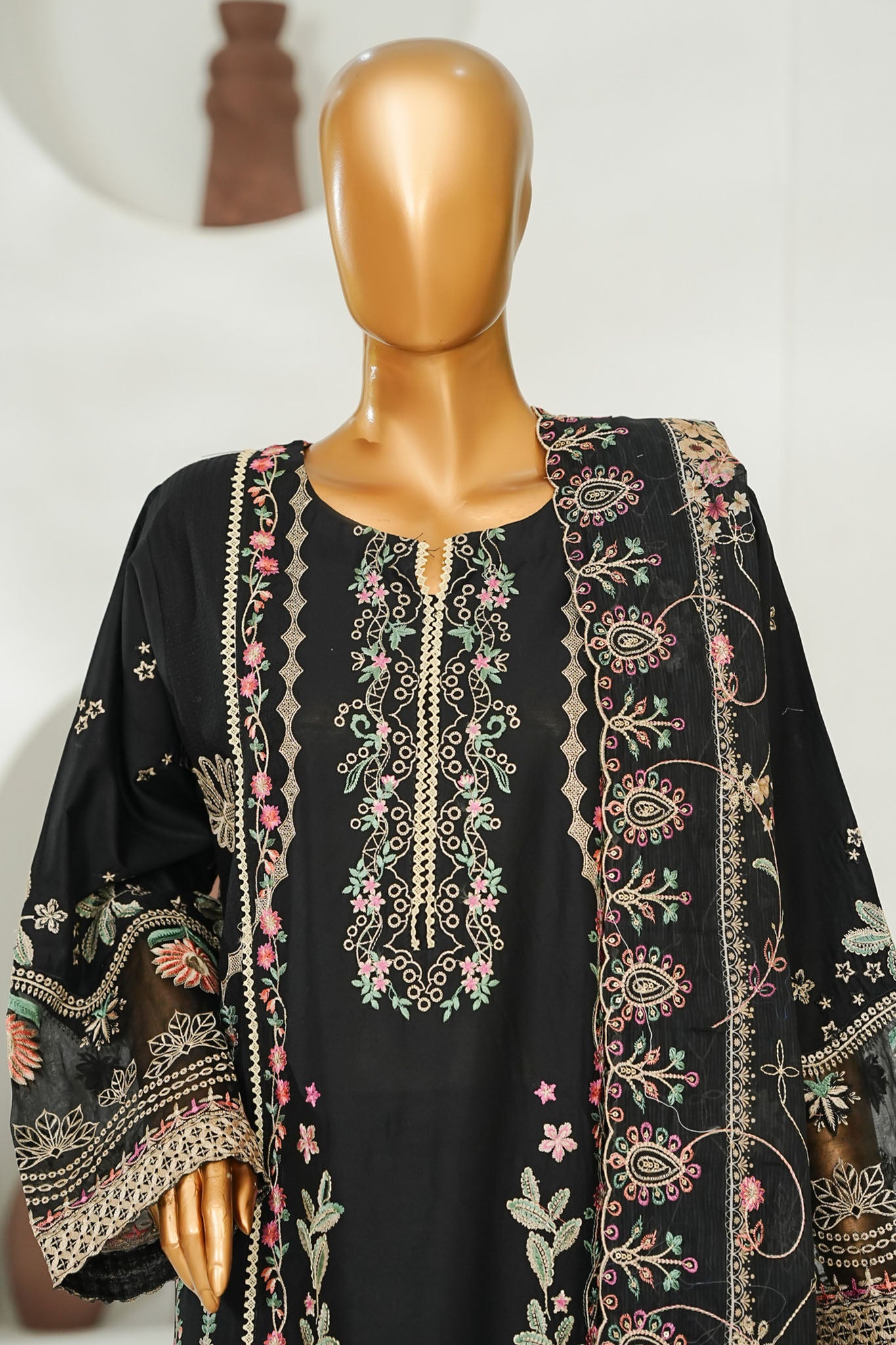 Bin Saeed Stitched 3 Piece Luxury Emb Lawn Vol-01 Suit-NSM-2787-BLACK