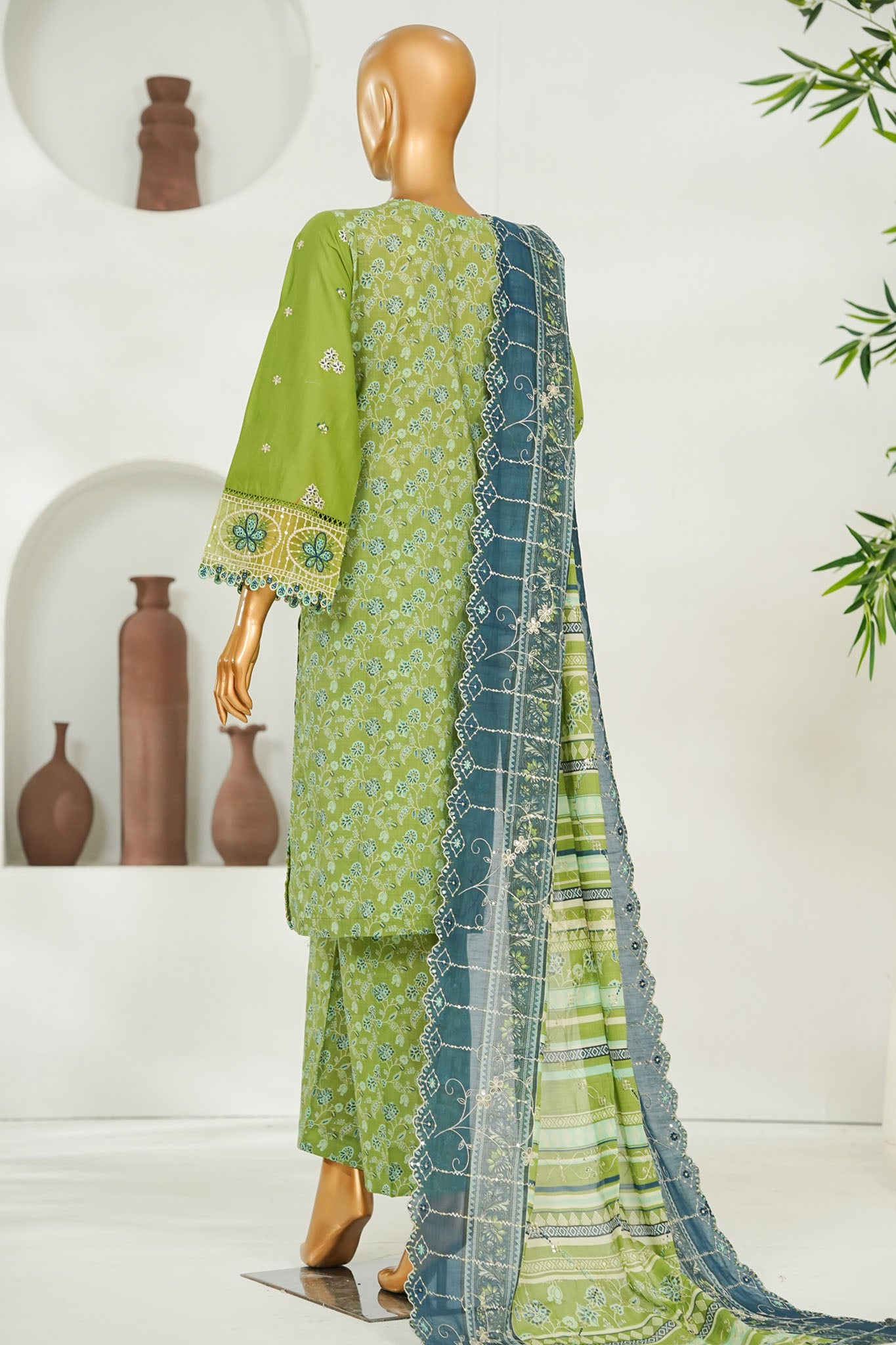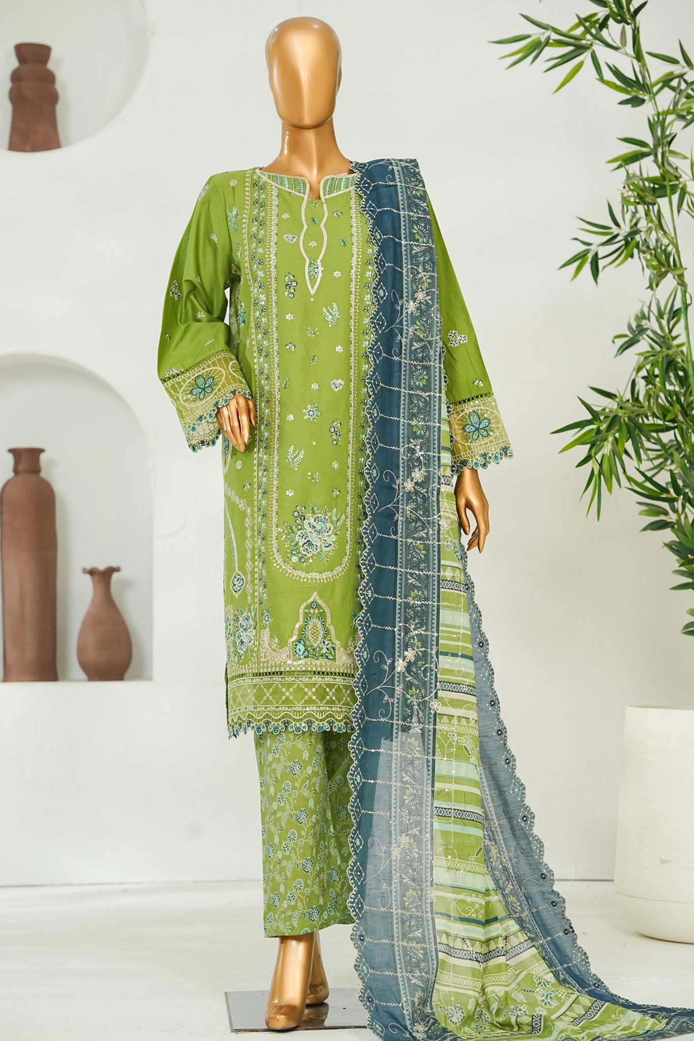 Bin Saeed Stitched 3 Piece Luxury Emb Lawn Vol-01 Suit-NSM-2789-GREEN