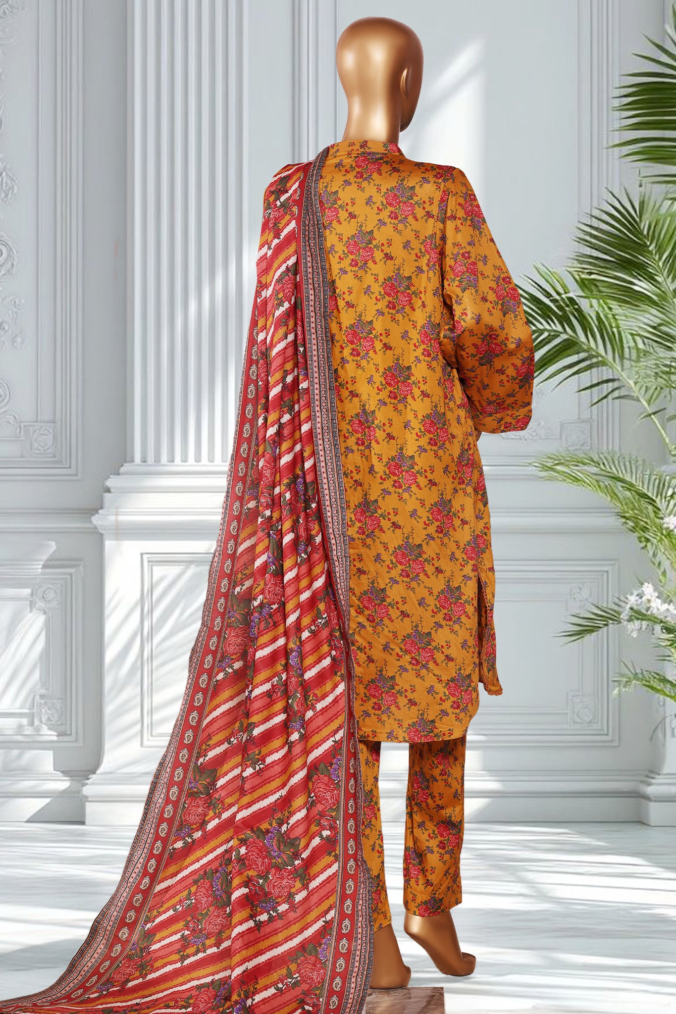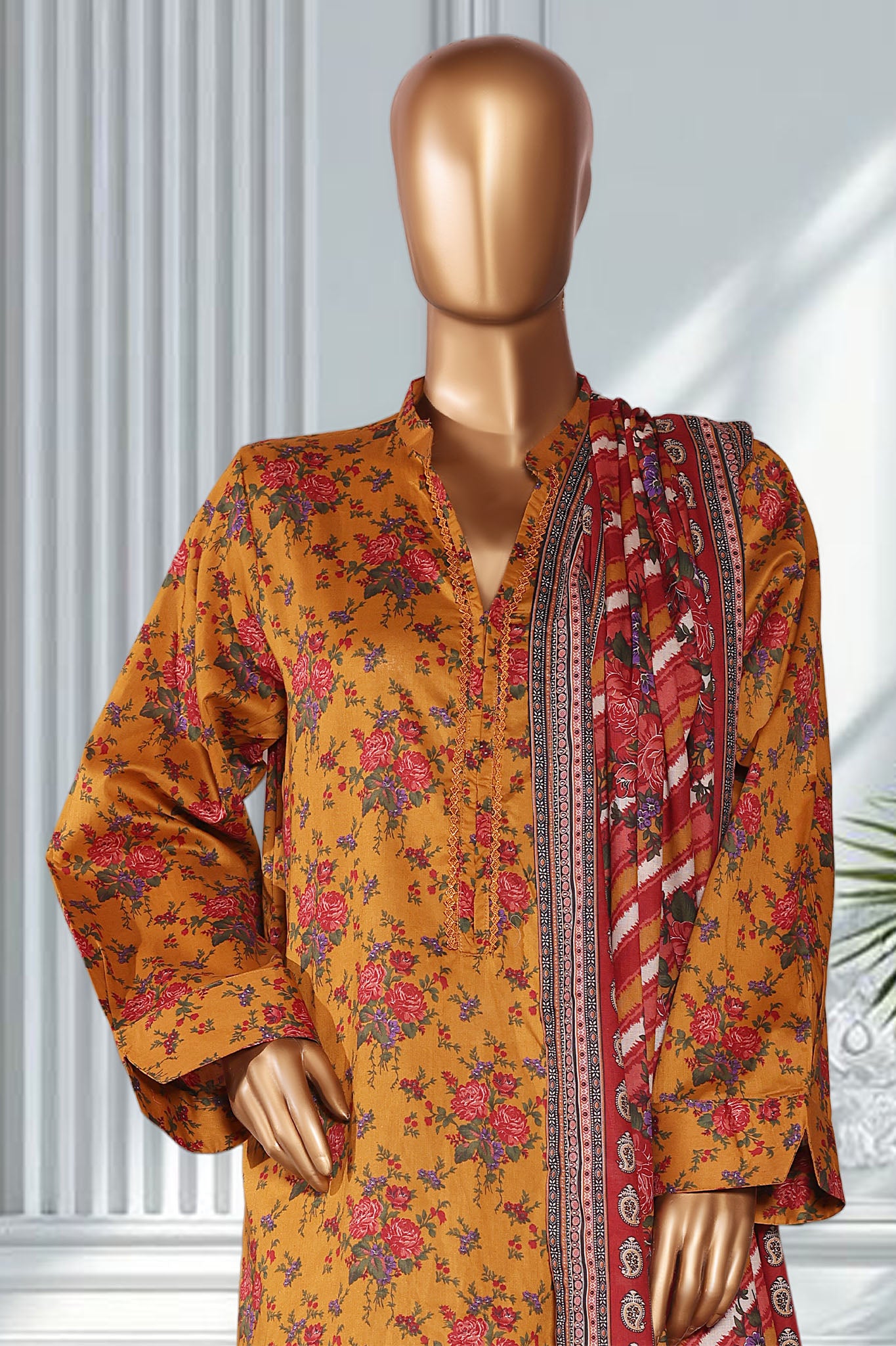 Bin Saeed Stitched 3 Piece Exclusive Printed Lawn Vol-02 Suit-LSM-2717-Mustard