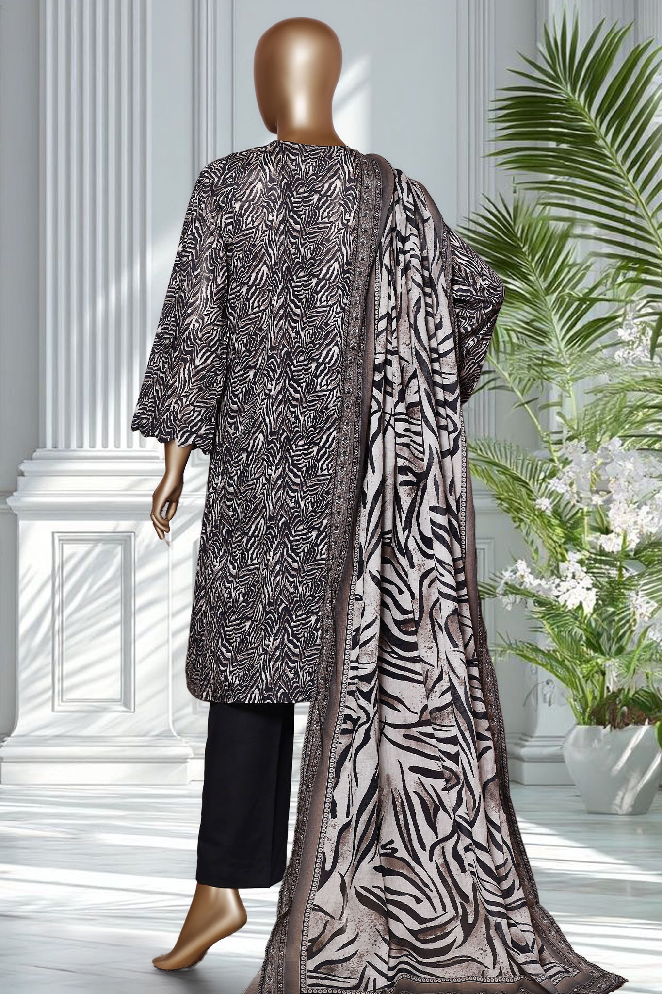 Bin Saeed Stitched 3 Piece Exclusive Printed Lawn Vol-02 Suit-LSM-2768-BLACK