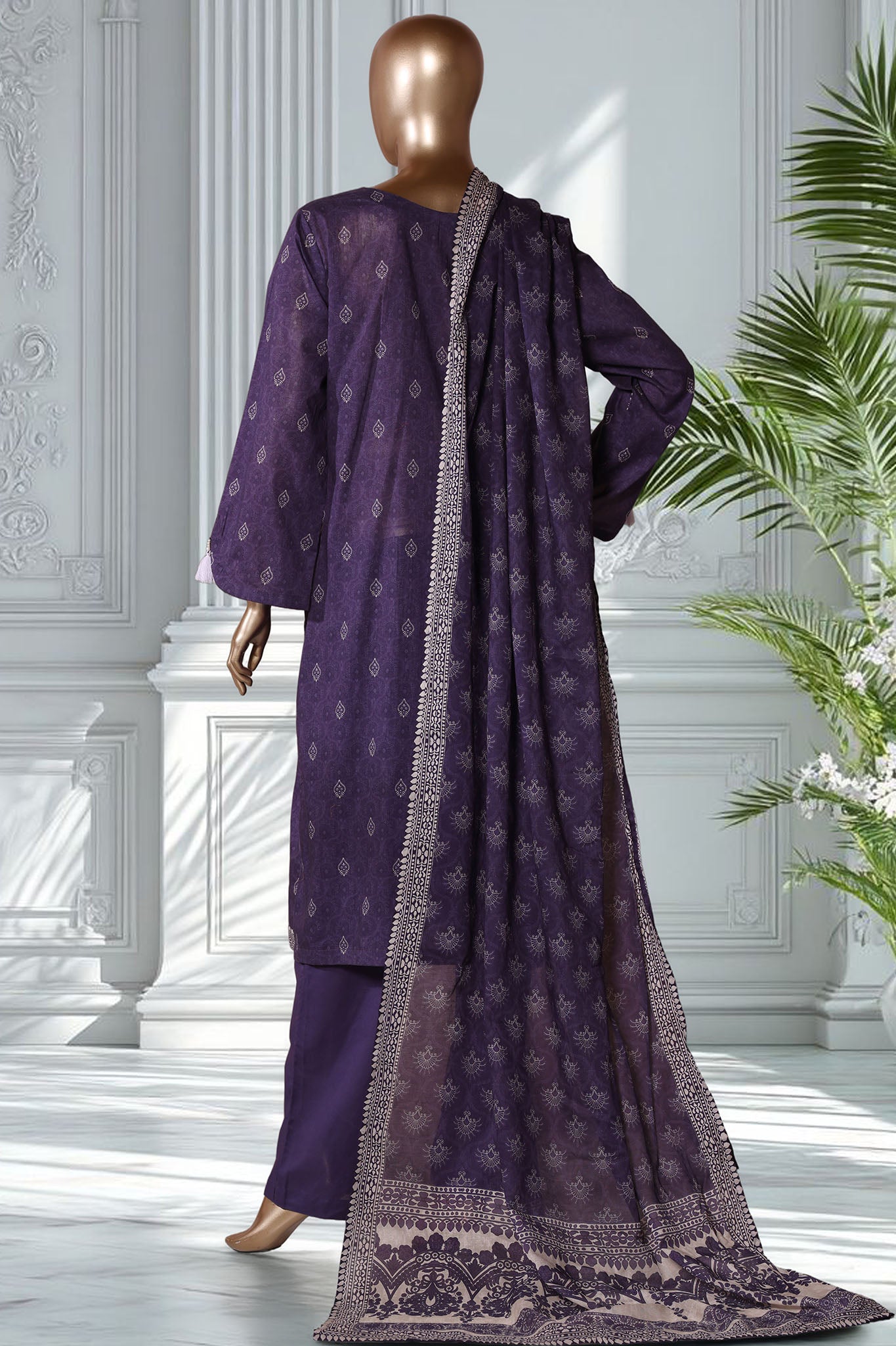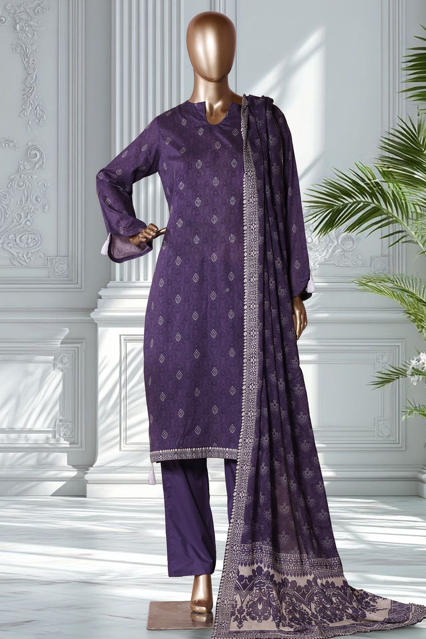 Bin Saeed Stitched 3 Piece Exclusive Printed Lawn Vol-02 Suit-LSM-2775-PURPLE