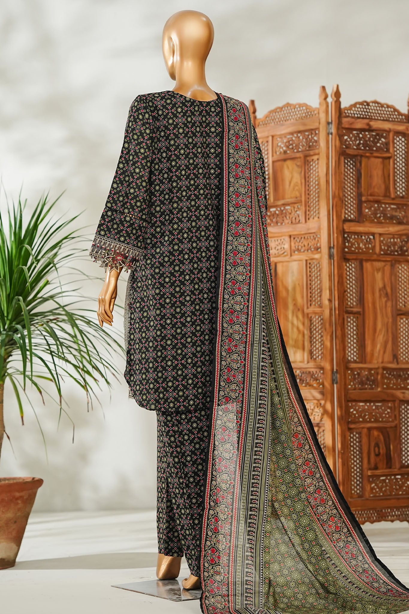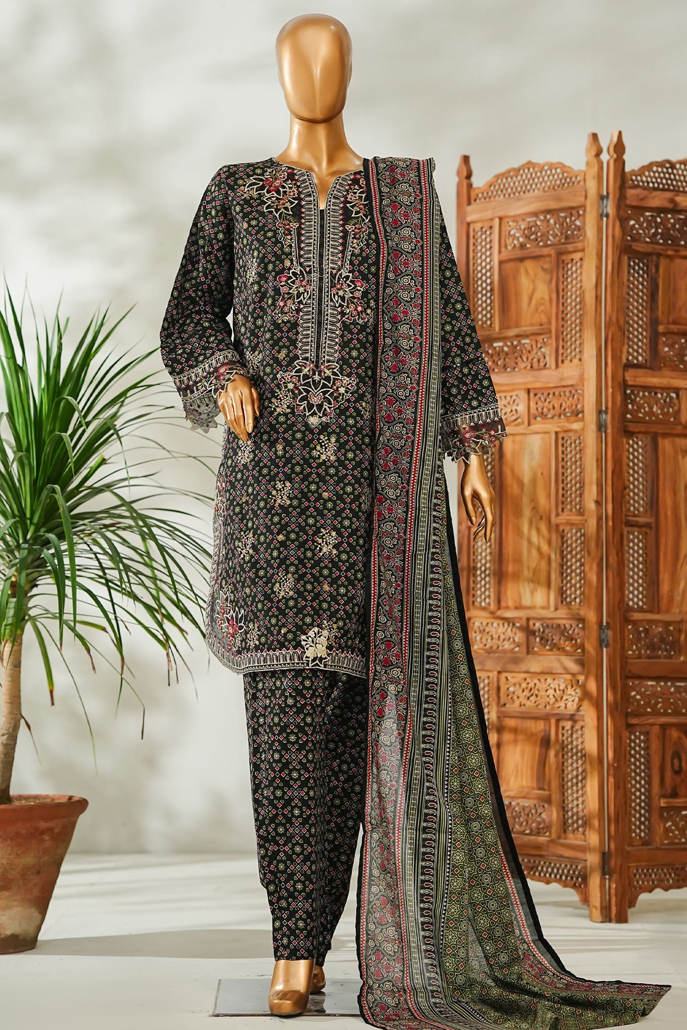 Bin Saeed Stitched 3 Piece Exclusive Emb Lawn Vol-02 Suit-NSM-2655 BLACK