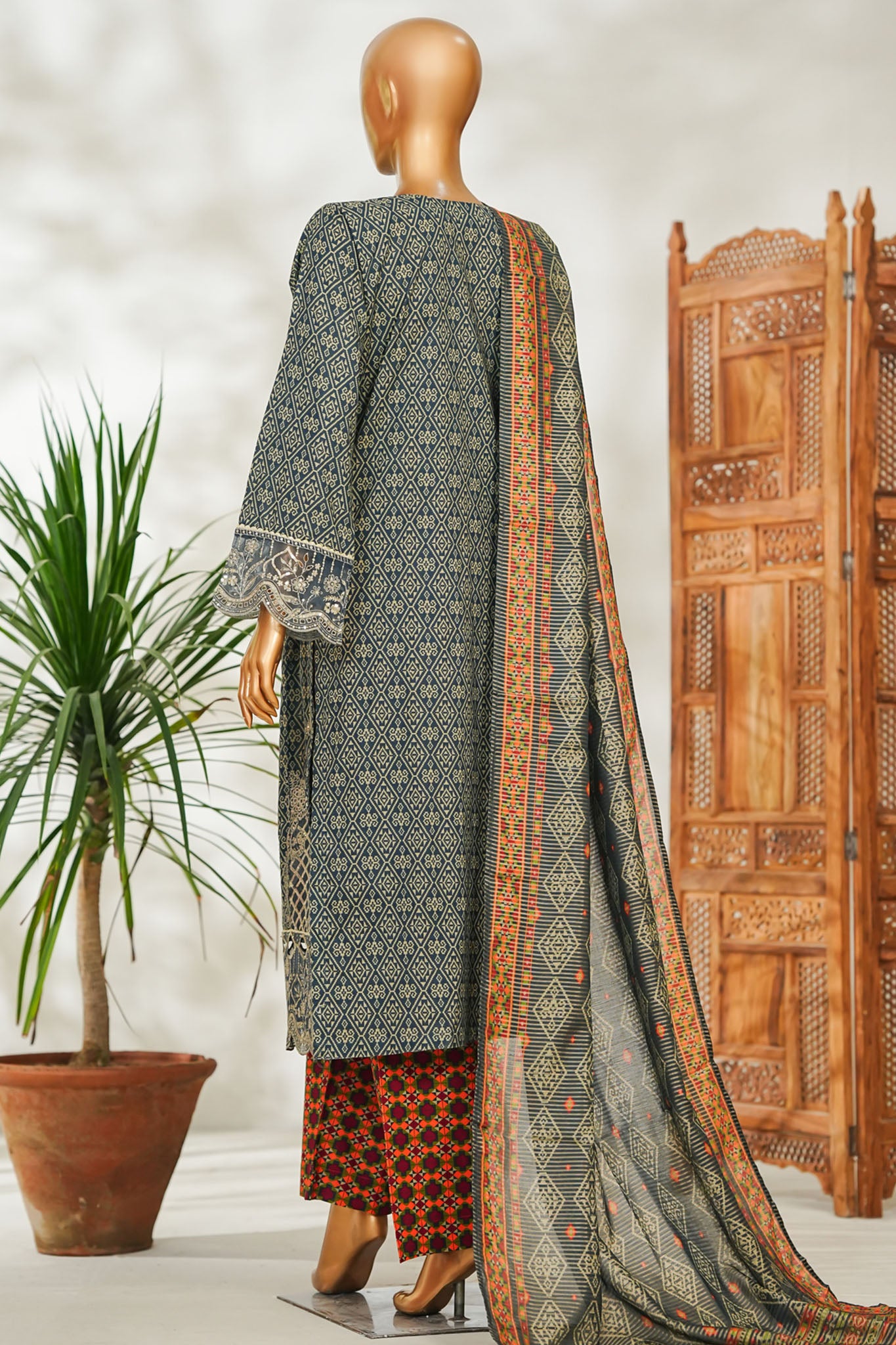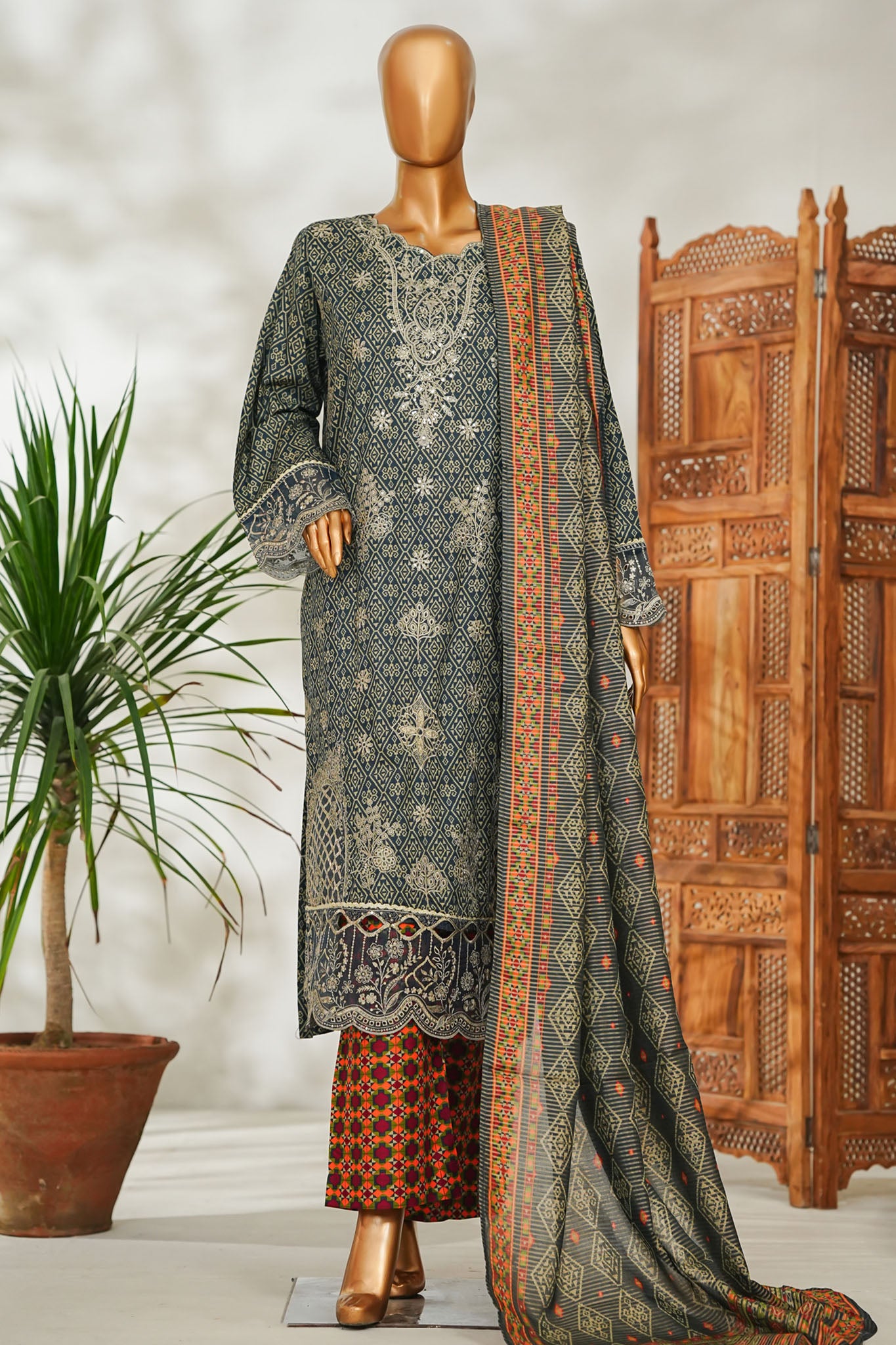Bin Saeed Stitched 3 Piece Exclusive Emb Lawn Vol-02 Suit-NSM-2659 GRAY