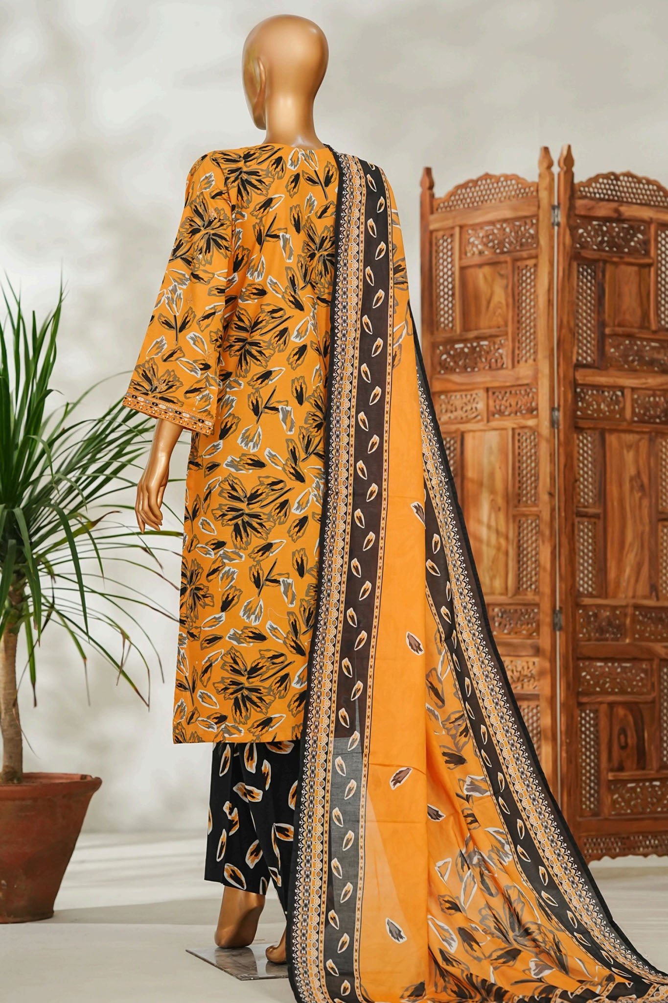 Bin Saeed Stitched 3 Piece Exclusive Emb Lawn Vol-02 Suit-NSM-2662 YELLOW
