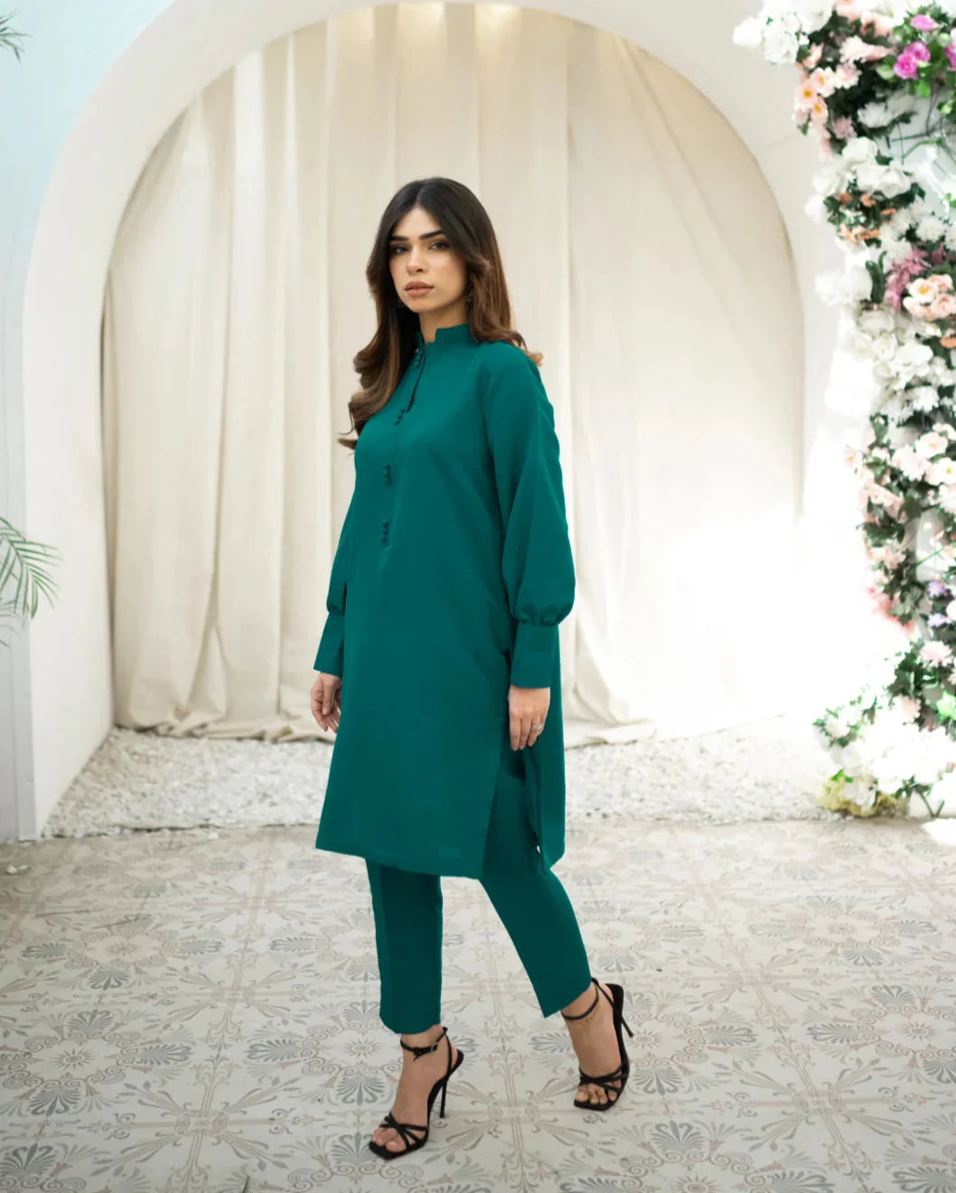 It’s a two piece matching set includes a shirt along with trouser.