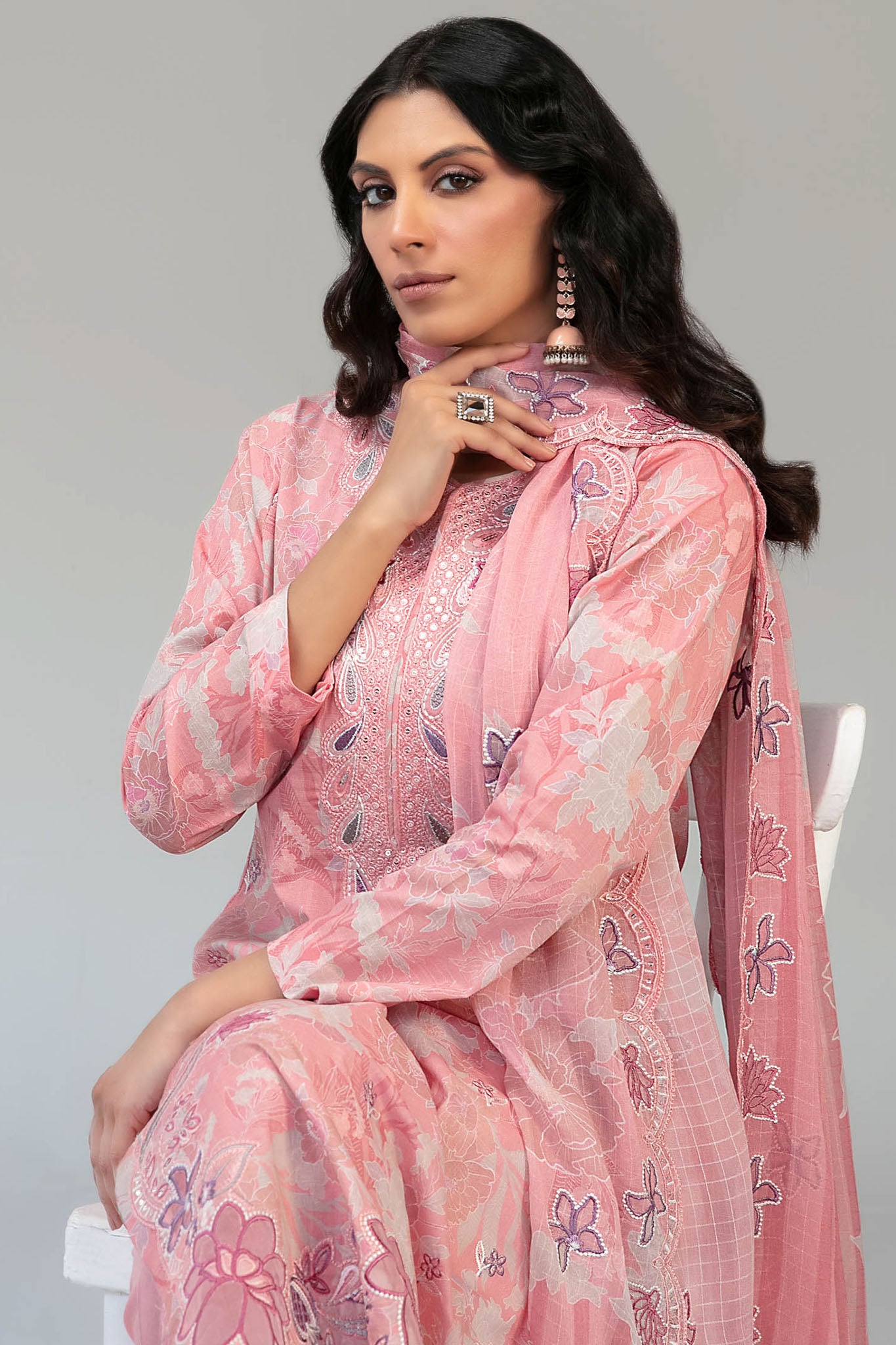 • Un-Stitched Embroidered Digital Printed Cross Slub Lawn Shirt