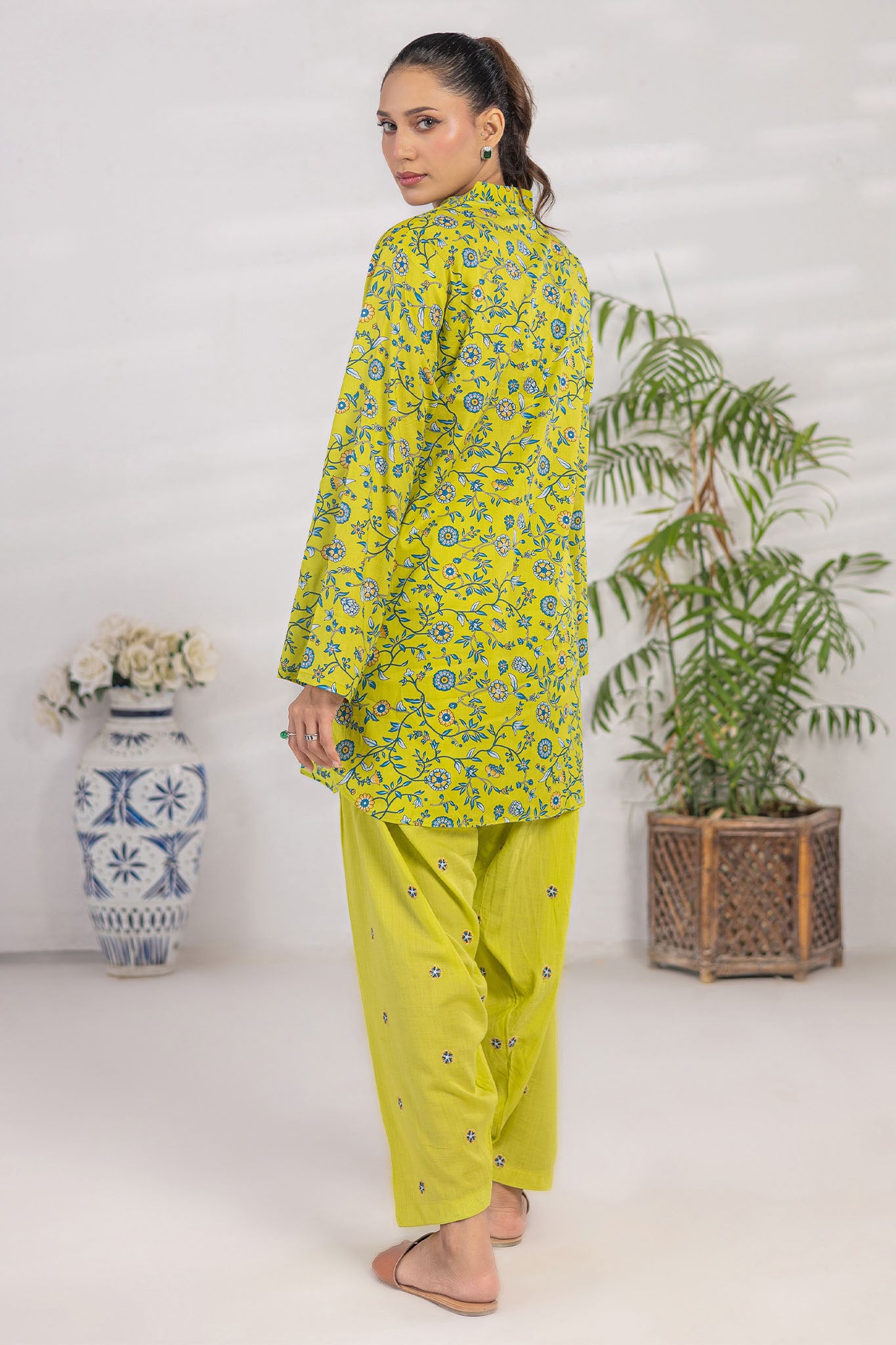 Basic Essentials By Dor Stitched Co Ords Digital Printed Cotton Suit-DBEC-06-Lime Green