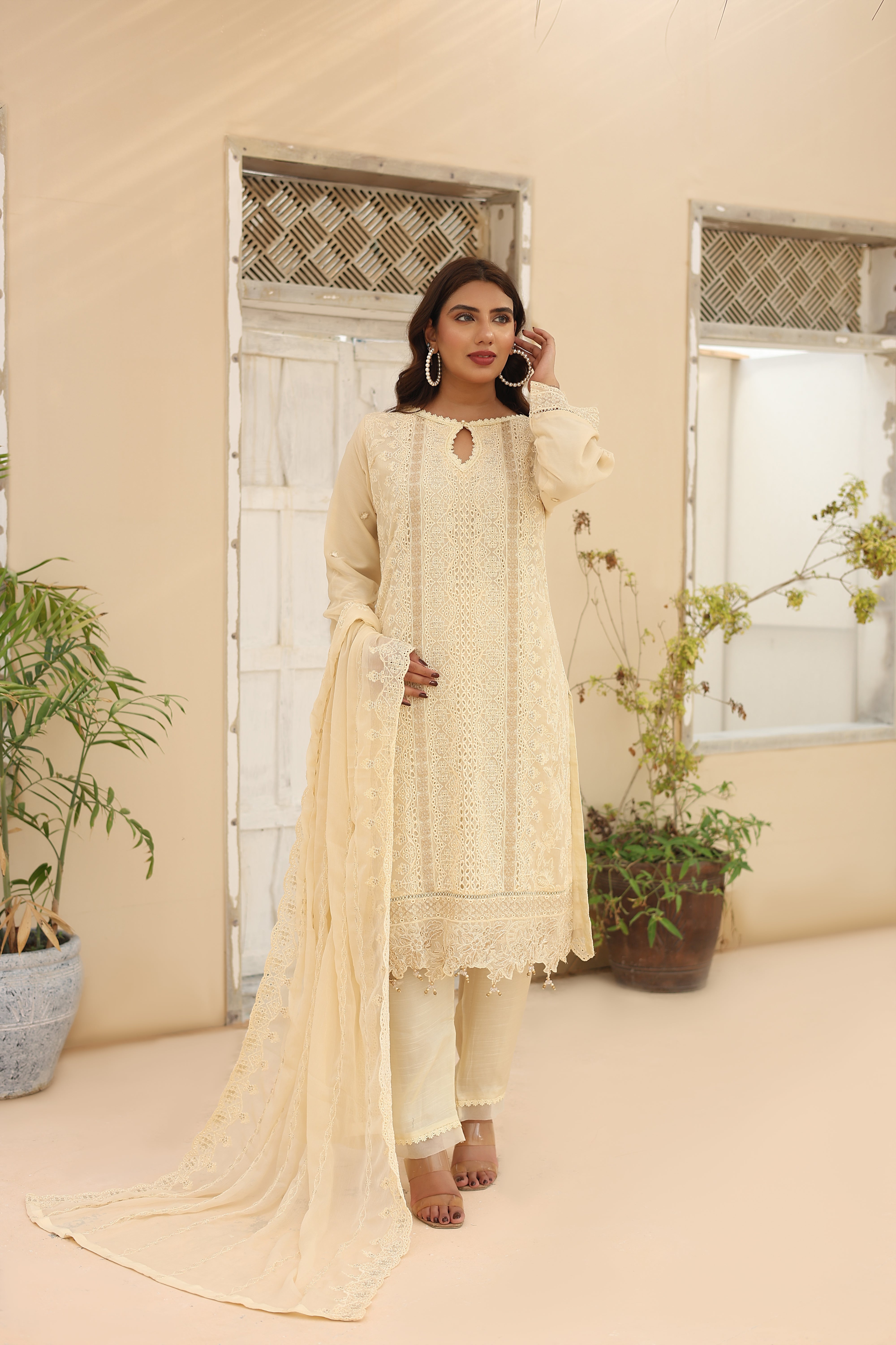 ð???️ The Dupatta: Float like a dream with our fully heavy embroidered cutwork chiffon dupatta, lovingly hand-embellished for that extra touch of sparkle! â?¨ You'll be the center of attention! ð?¤©