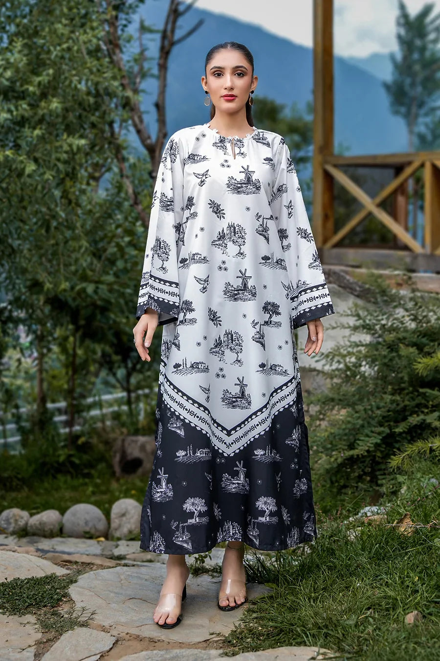 A stylish 1-piece long kaftan with a loose-fit cut, loop neckline, Perfect for effortless elegance and comfort.