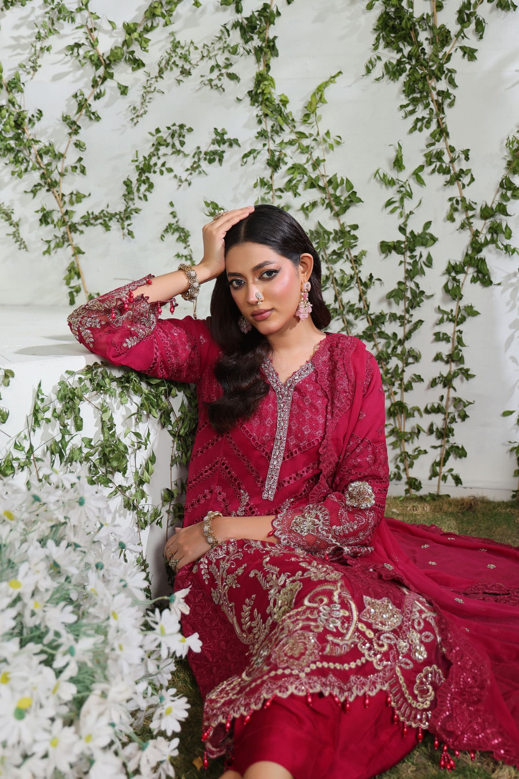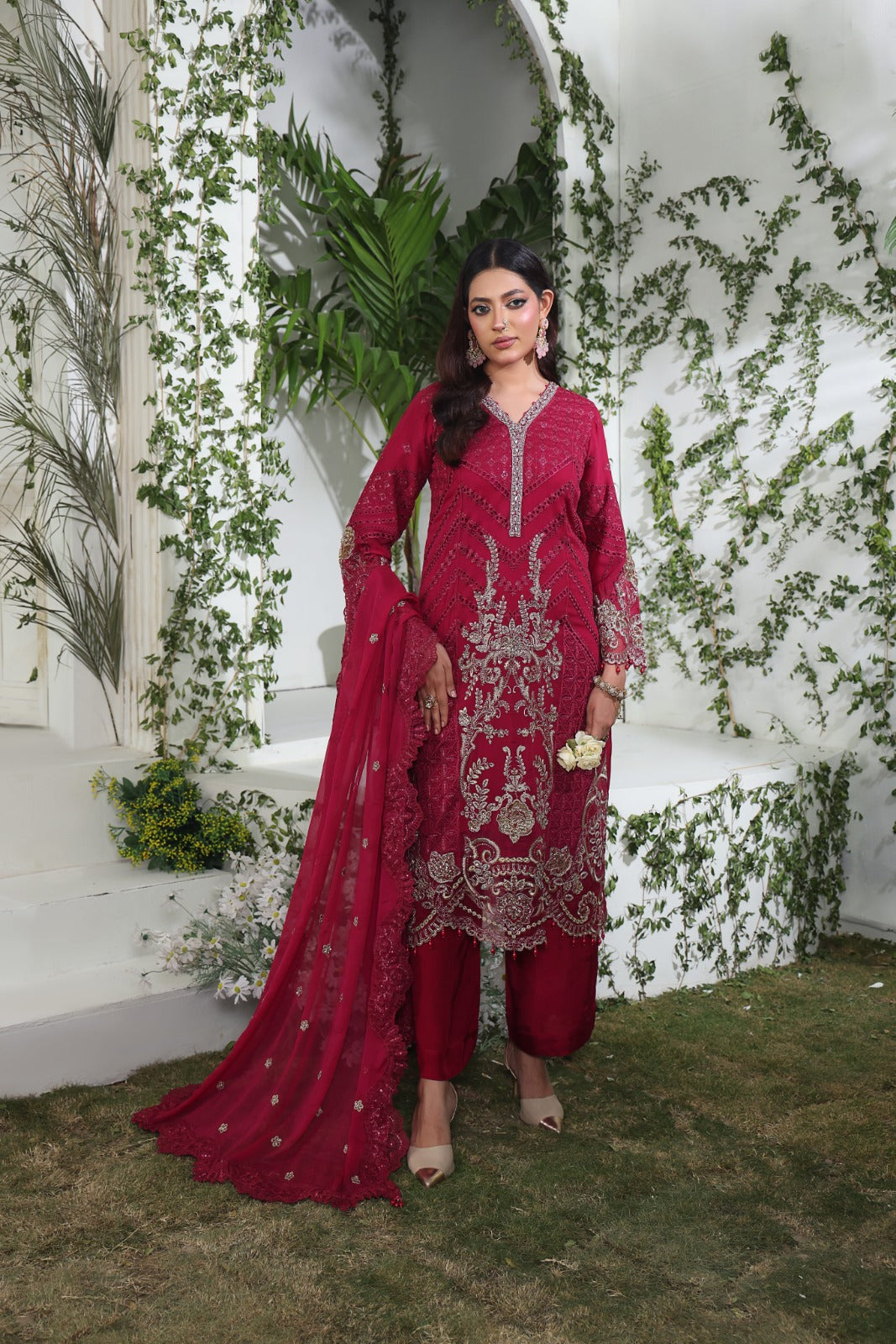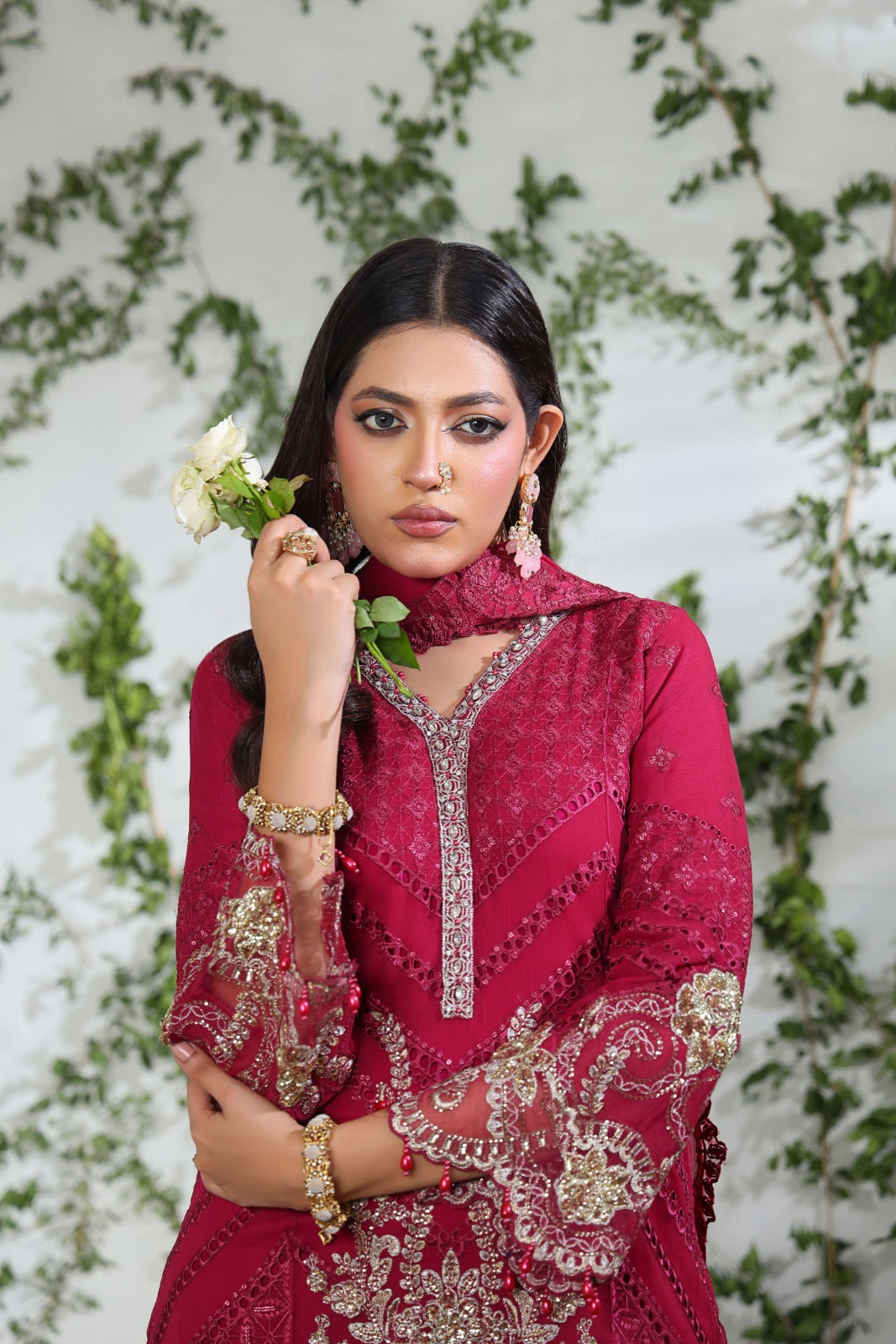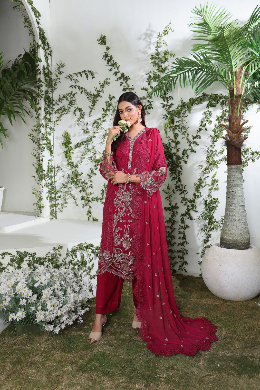 Semi Stitched Embroidered Luxury Chiffon Shirt With Exclusive Hand Embellishment Front!