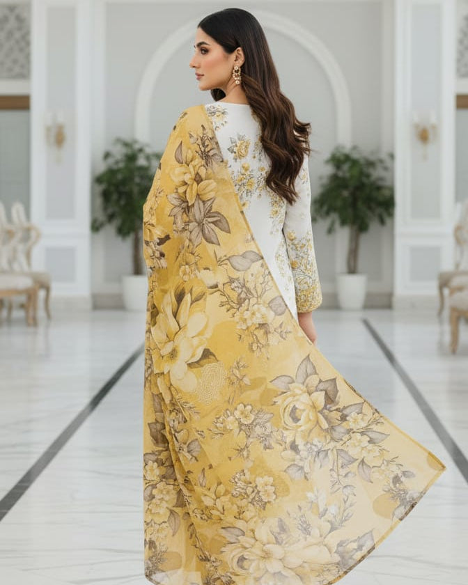 Unstitched Digital Printed Cross Slub Lawn Shirt