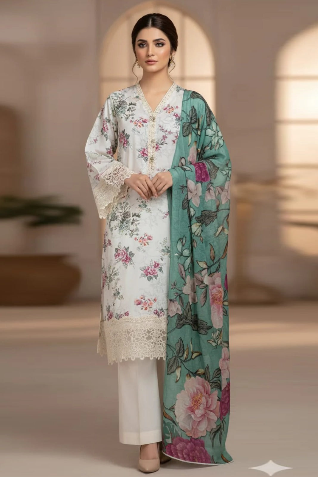 Unstitched Digital Printed Cross Slub Lawn Shirt