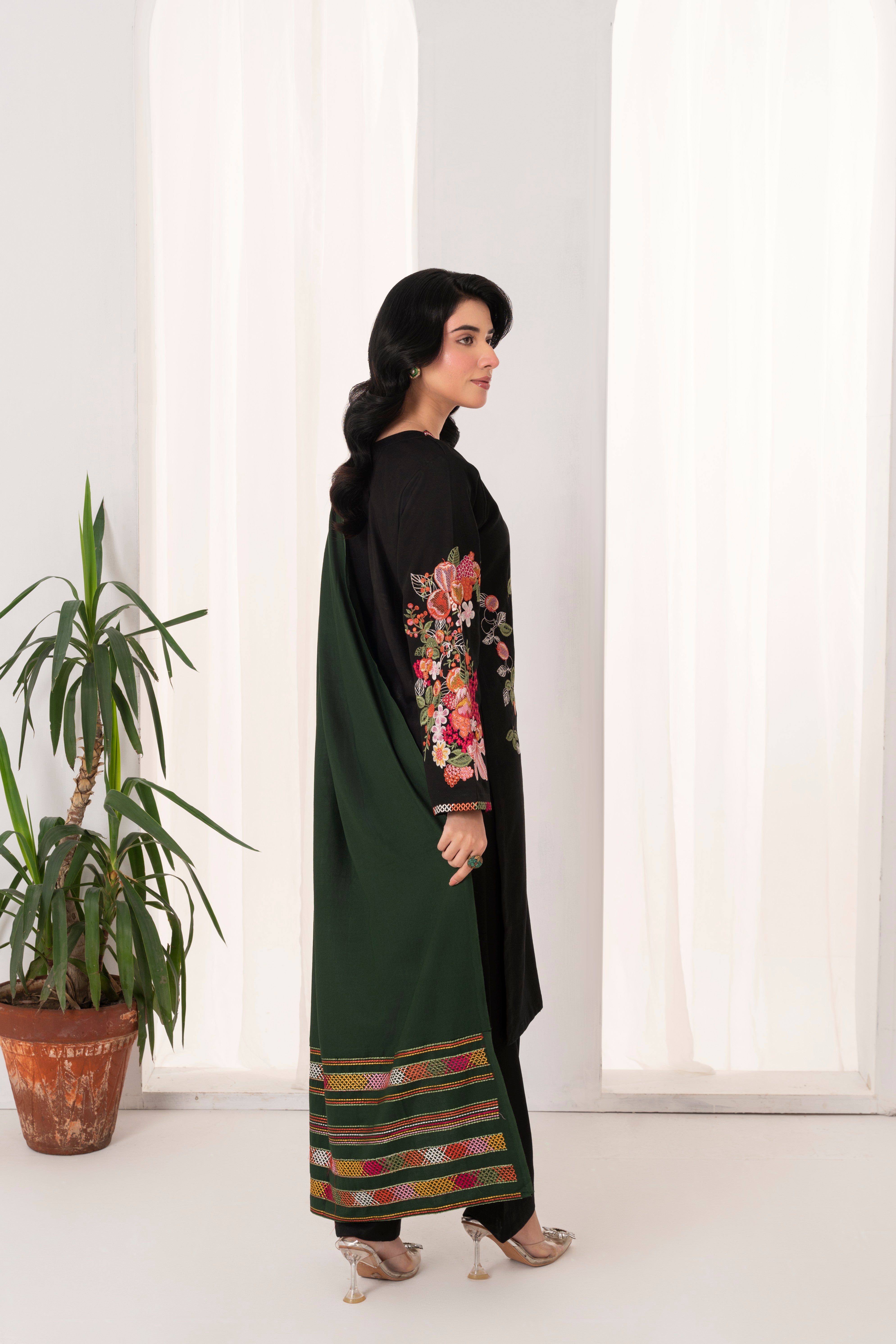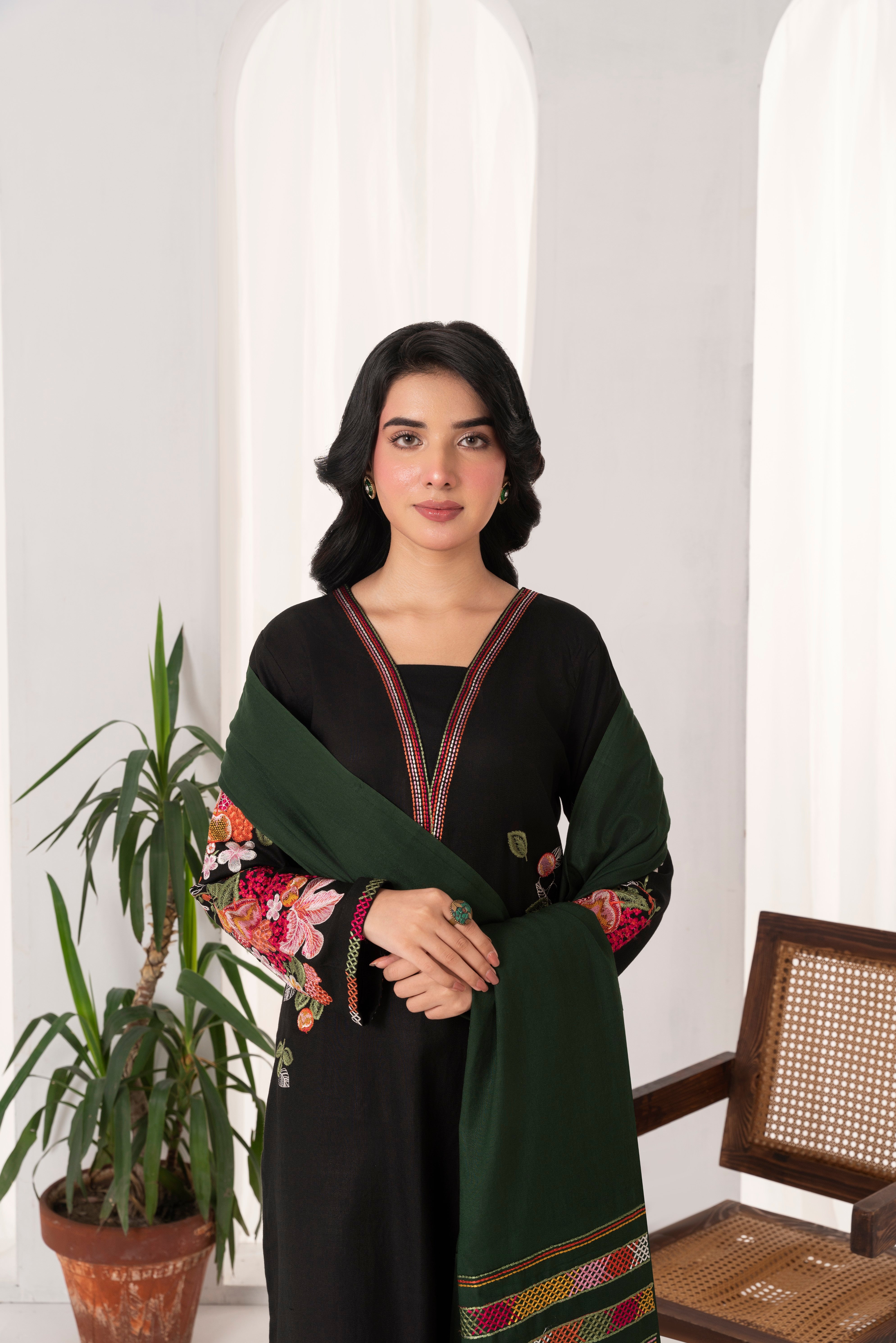Experience an exquisitely (Unstitched) Embroidered Dhanak shawl with Embroidered Dhanak suit for a new go this winter season.