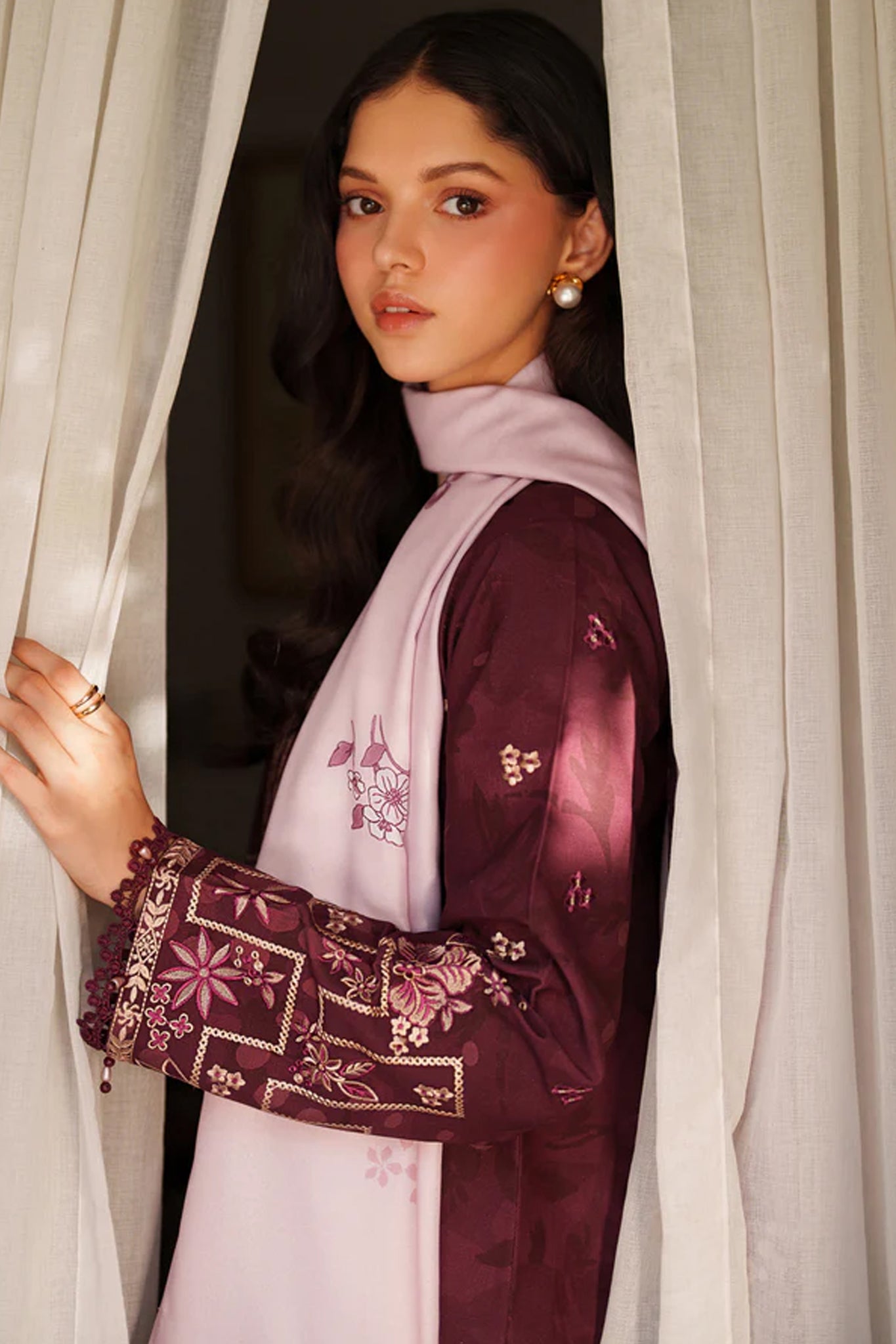 Meline By Farasha Unstitched 3 Piece Premium Viscose Collection'2025-10-Mauve Cream