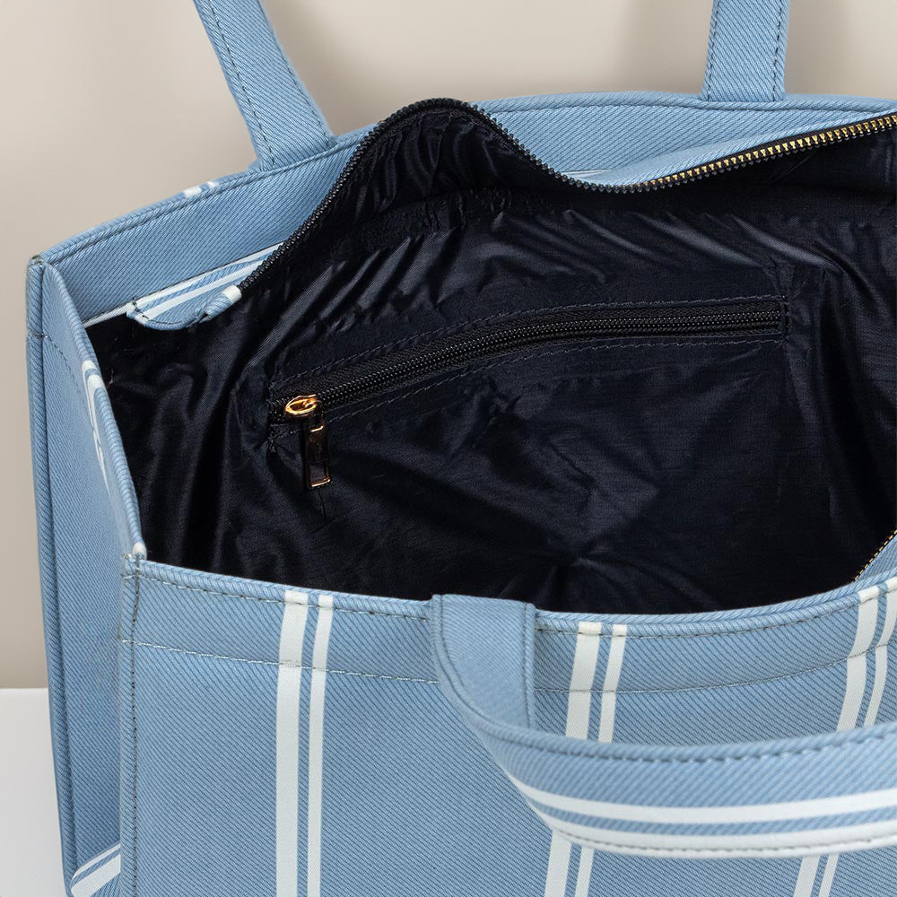 The Coastal Breeze Blue Striped Tote captures that seaside serenity in every stitch. Handwoven with artisan care, its cool blue stripes evoke the gentle rhythms of the ocean perfect for beach strolls, weekend getaways, or casual summer moments. With a roomy interior, secure inner pocket, and sturdy straps, yeh tote stylishness aur practicality ka ideal blend hai. Lightweight in feel, yet strong enough to carry your sun hat, beach towel, water bottle, or daily essentials bringing vacation vibes wherever you go.